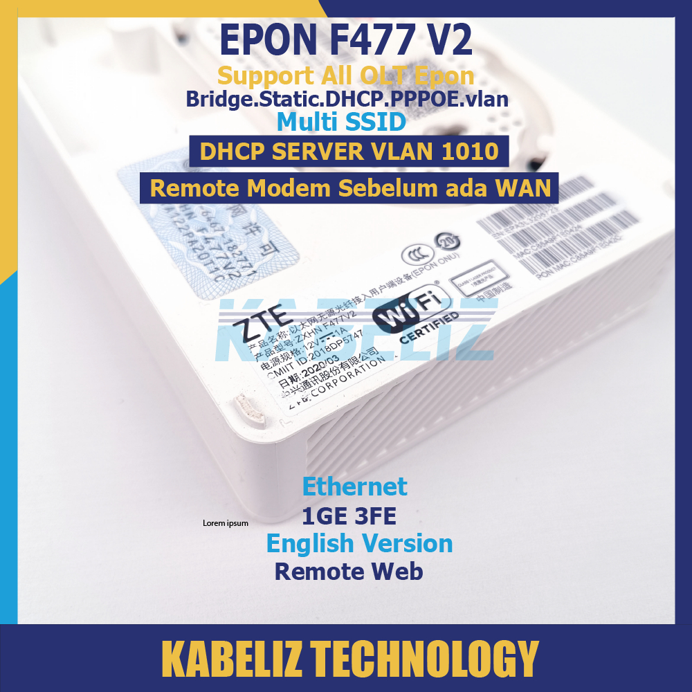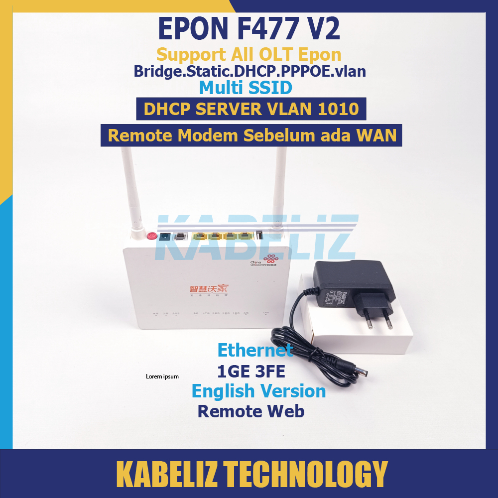 ONU EPON ZTE F477 V2 MODEM WIFI ROUTER ZTE SUPPORT SEMUA OLT EPON MURAH SECOND SUPPORT BRIDGE UNIT + ADAPTOR