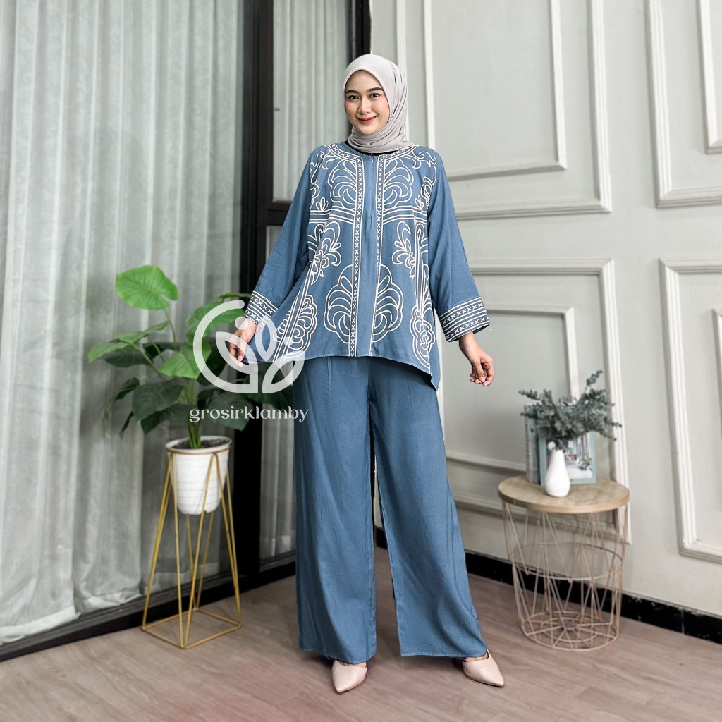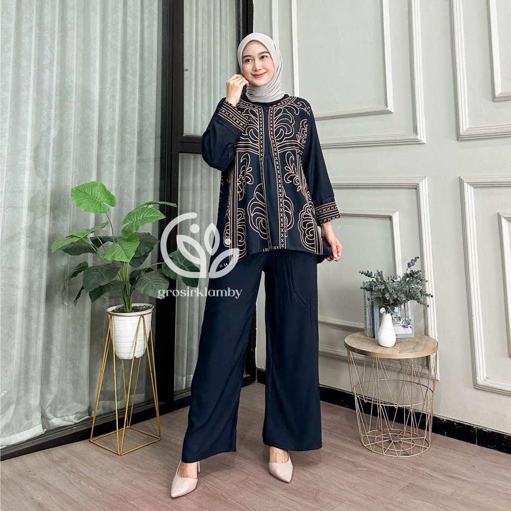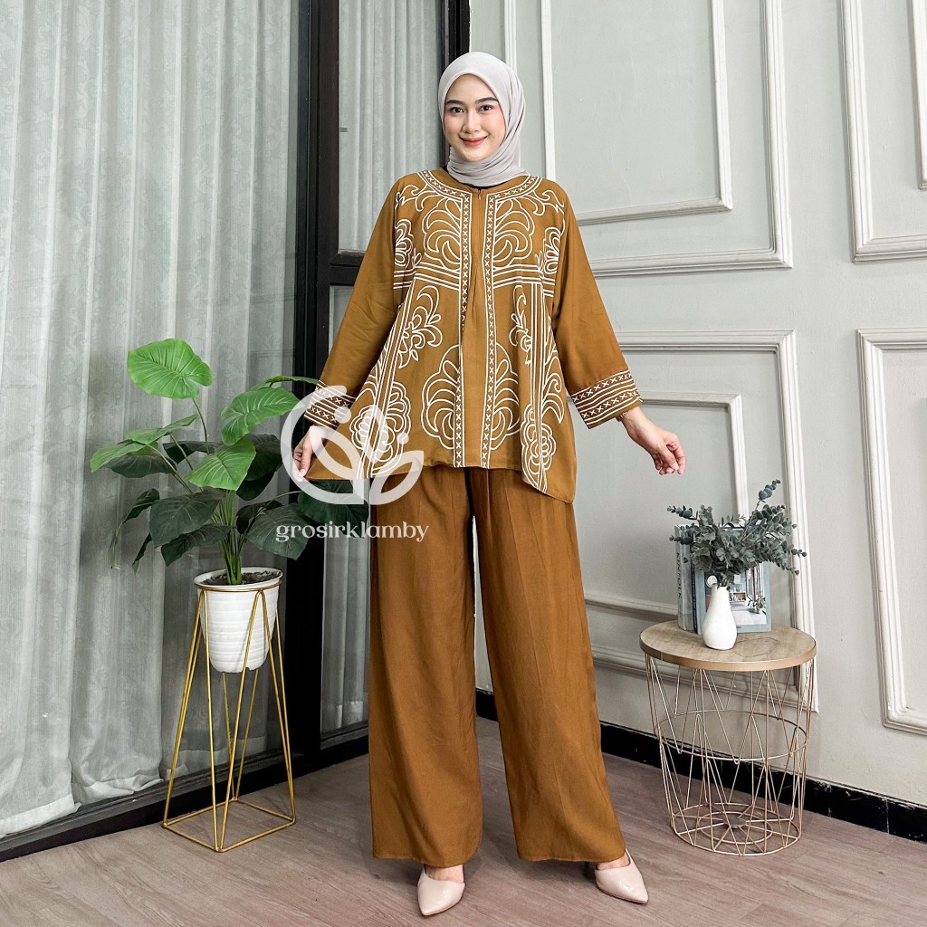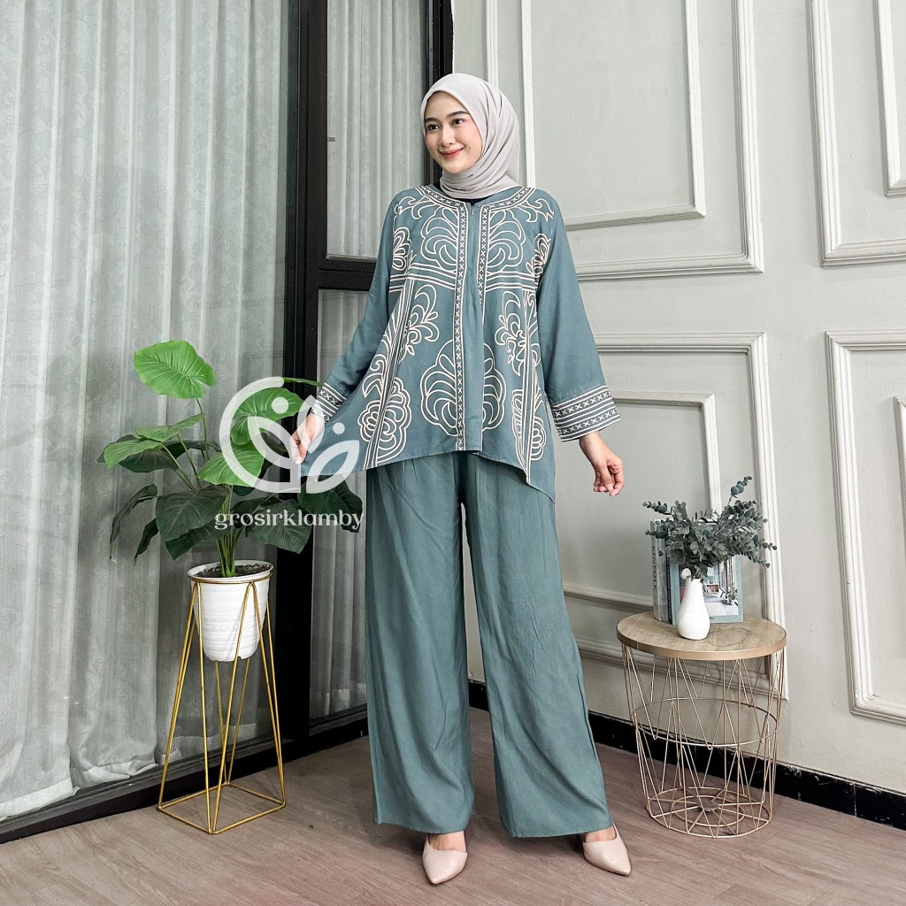 One Set Anjeli Rayon Busui Setelan Wanita Atasan Celana Panjang Batik Adem Tebal Nyaman
