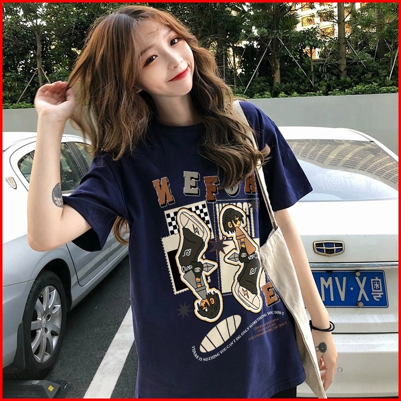 Forteid Biru Laut T-shirt Lengan Pendek Baju Kaos Oversize Wanita Baju Kaus Wanita Korea Baju Atasan Wanita Terbaru Ceta