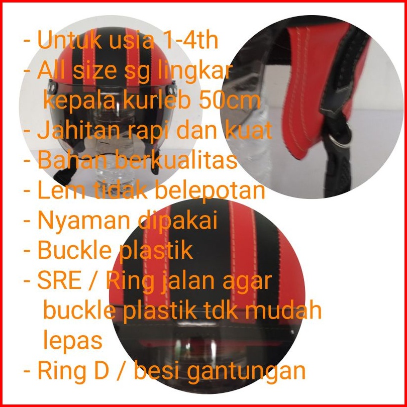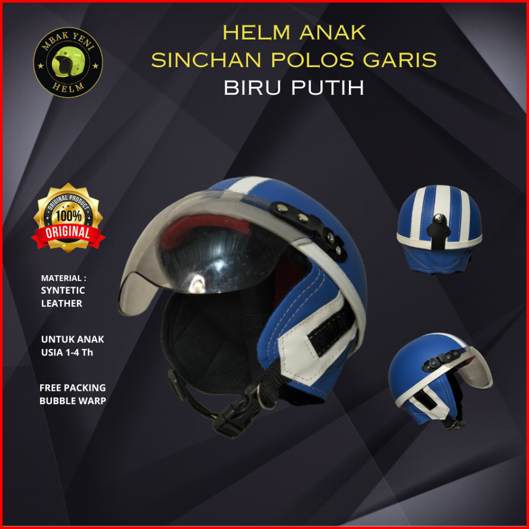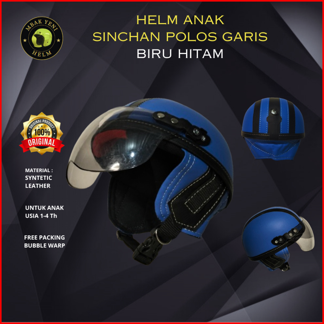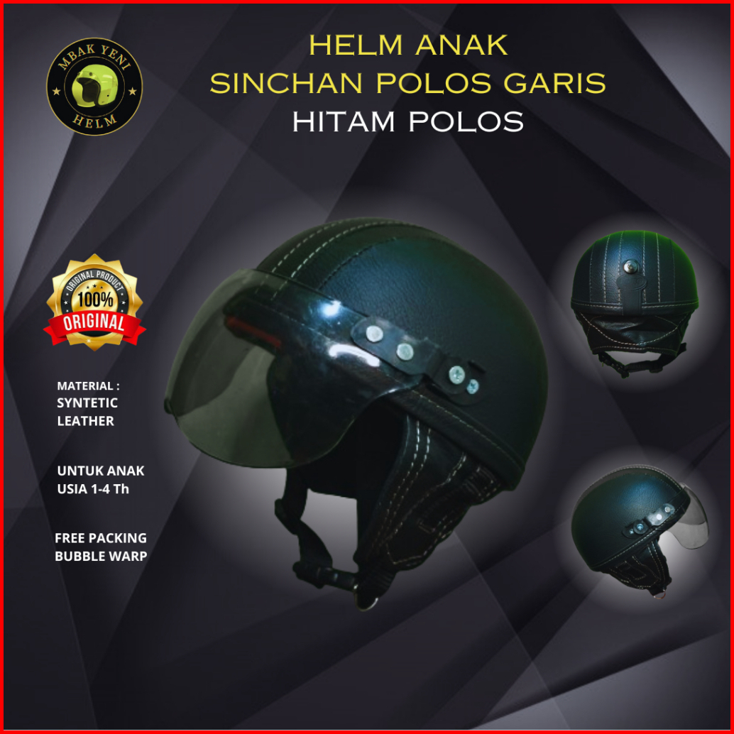 Helm Anak Retro 1 2 3 4 Tahun Kulit Premium Polos Garis Chips Junior Kaca Riben Sinchan Garis