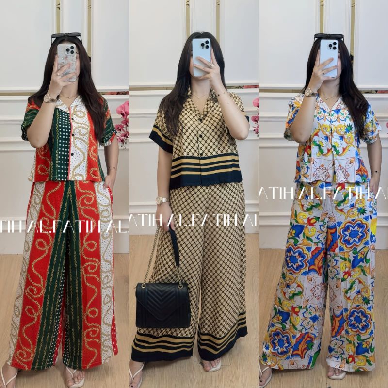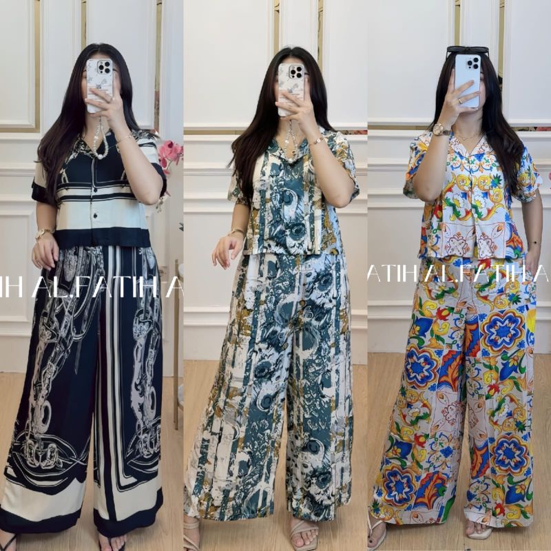 New One Set Crop Setelan Celana Kulot Wanita Hightwaist Rayon Premium Busui Friendy BB MAX75KG