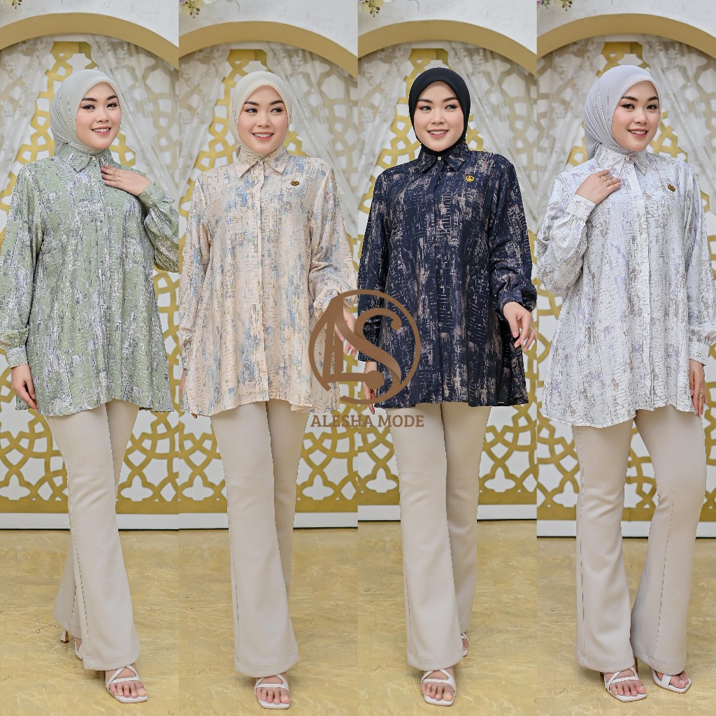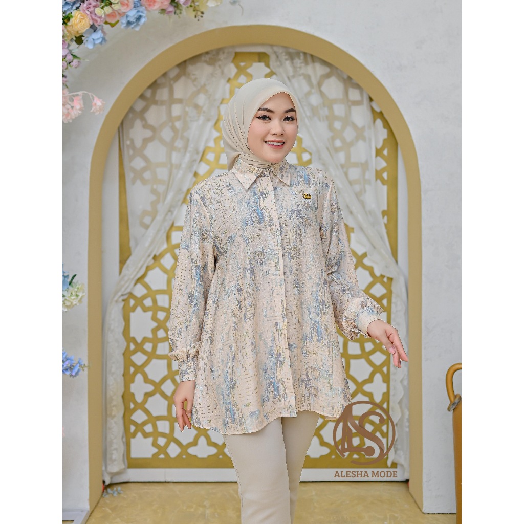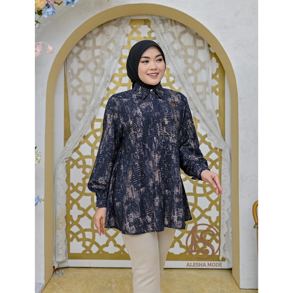 Blouse tunik katun silk silky premium motif printing terbaru standar hingga jumbo by Alesha Mode