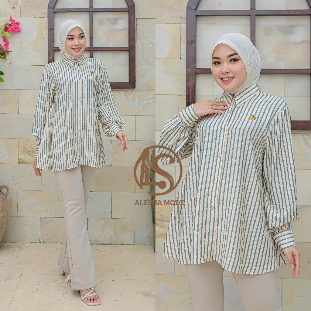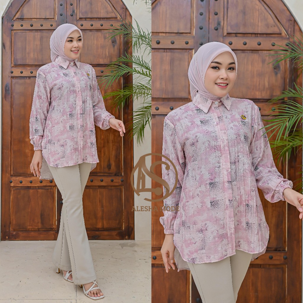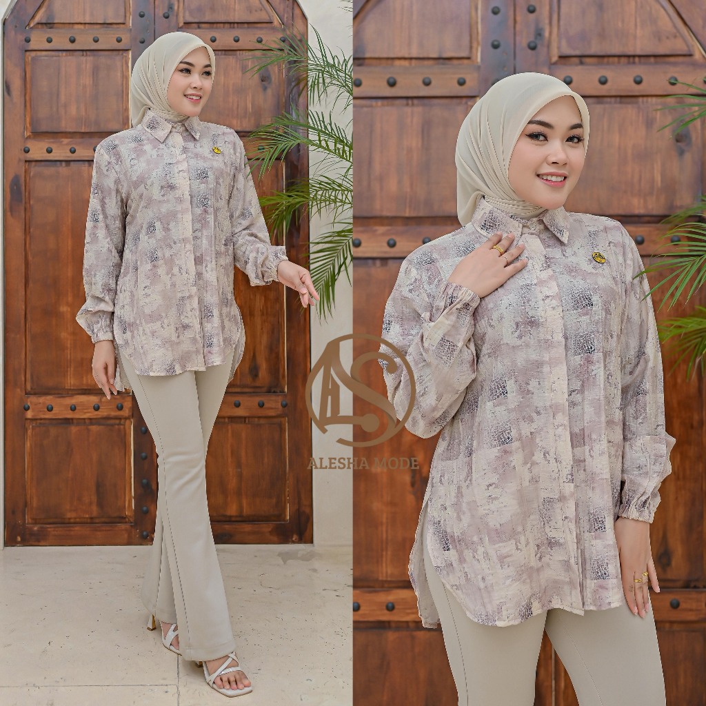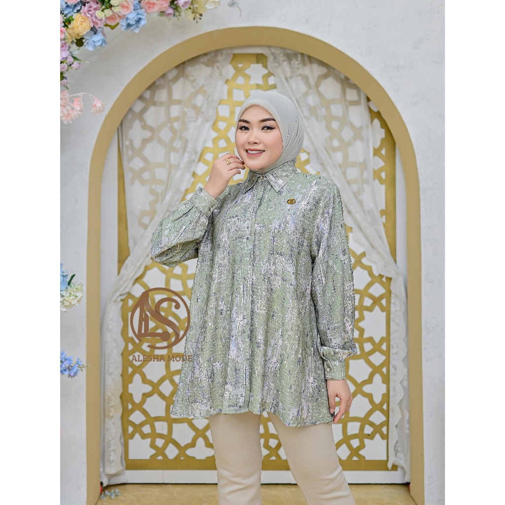 Blouse tunik katun silk silky premium motif printing terbaru standar hingga jumbo by Alesha Mode