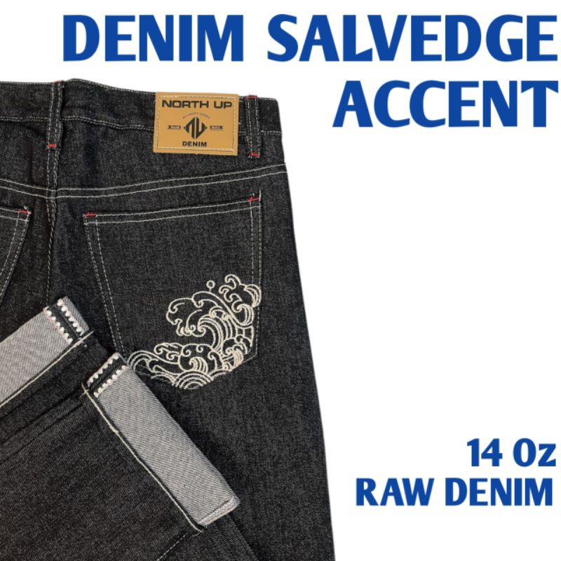 NORTH UP CELANA RAW DENIM SELVEDGE ACCENT SHELSTICH BLACK INDIGO