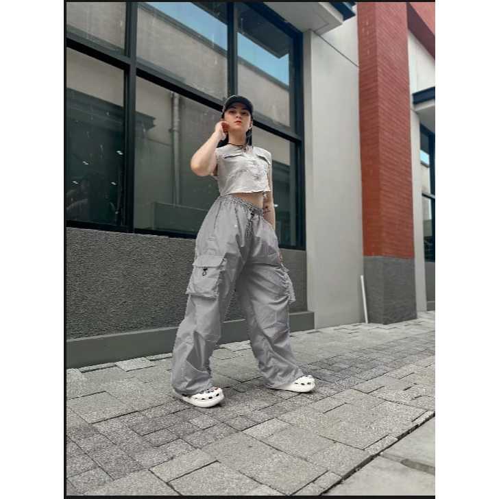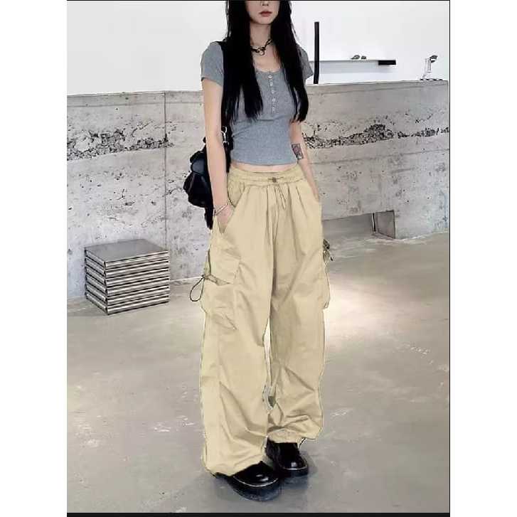 Cargo Pants Wanita Highwaist Loose Pants Korean Style Jumbo - Celana Cargo Wanita Terbaru
