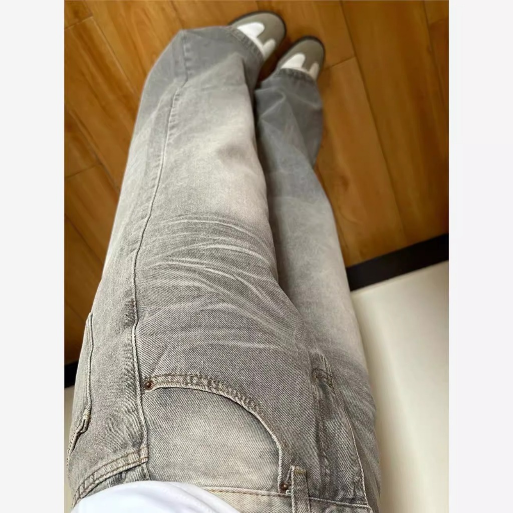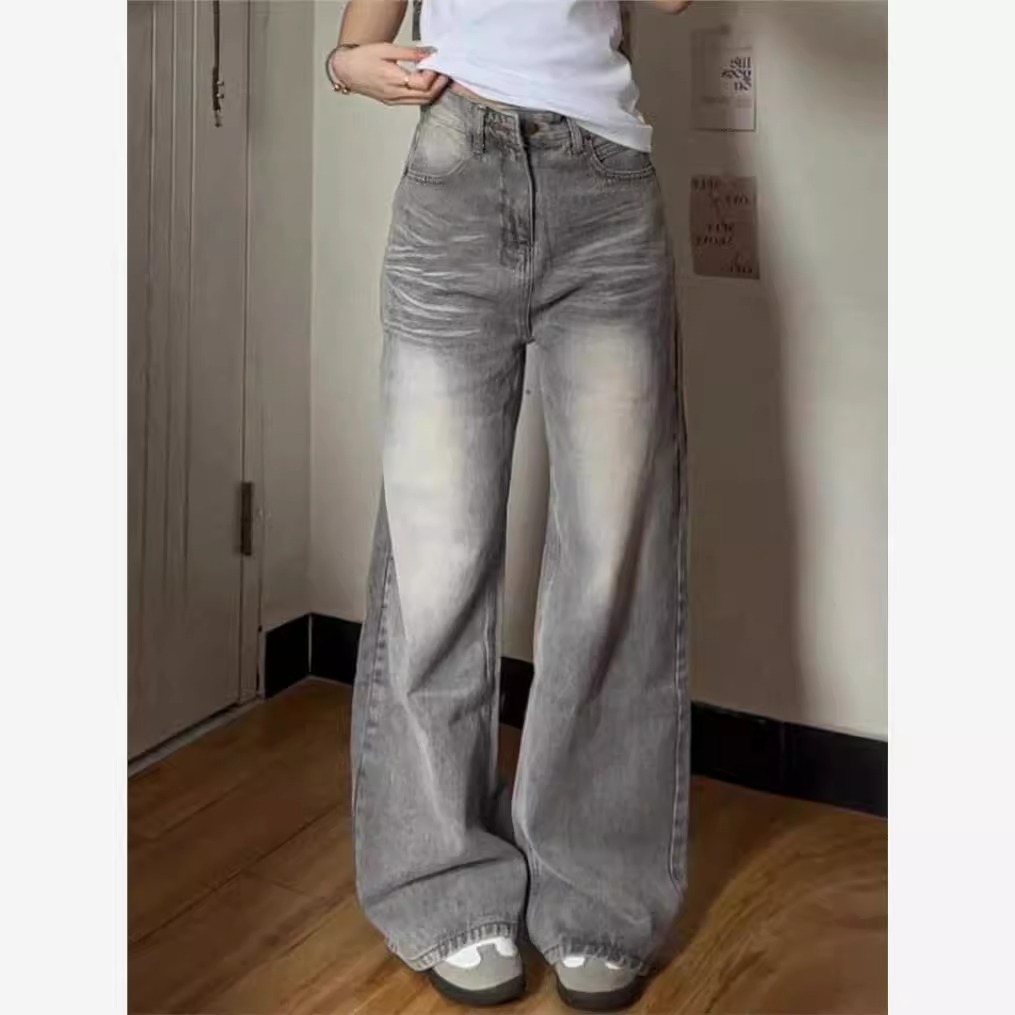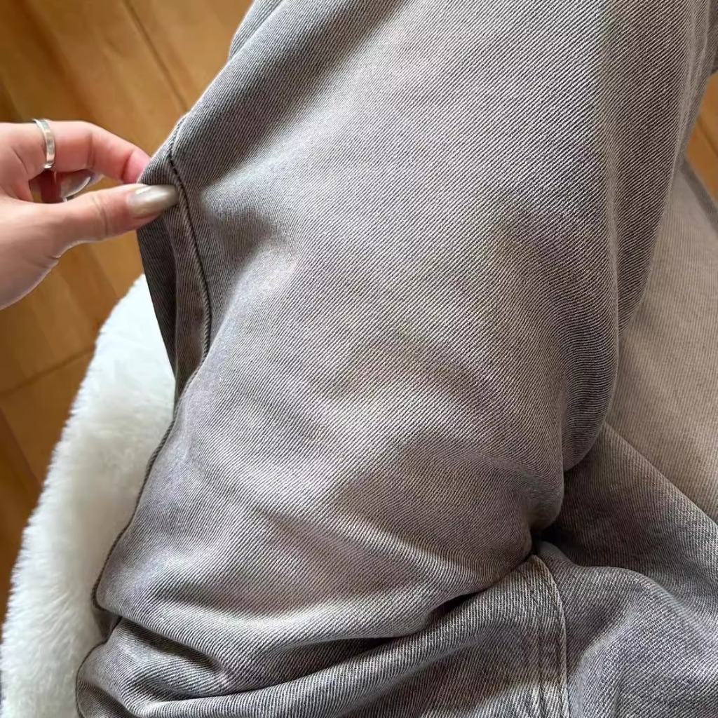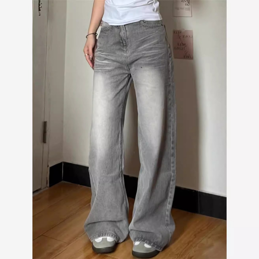 LULU Abu-abu Kulot Highwaist Celana Panjang Wanita-baggy jeans wanita--Goresan halus dan jelas