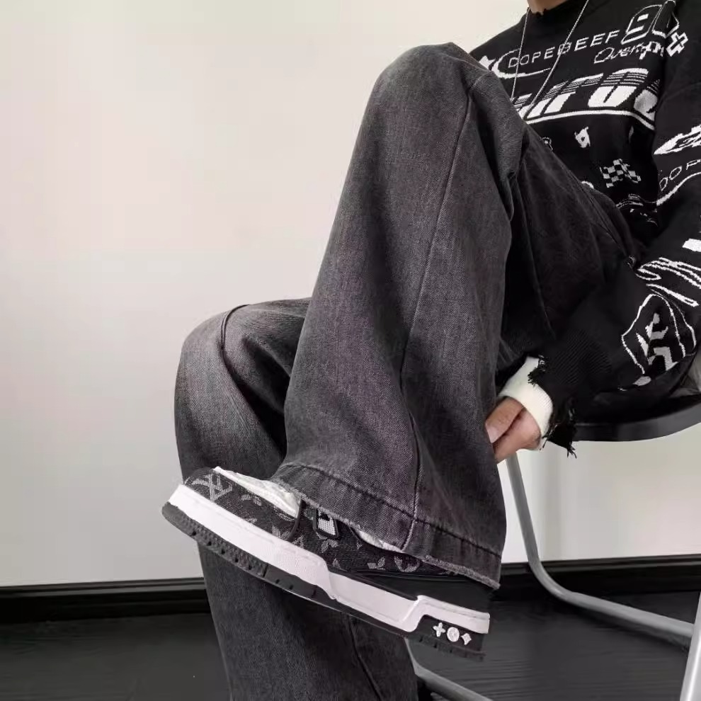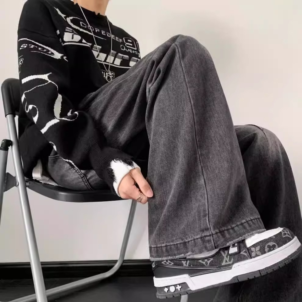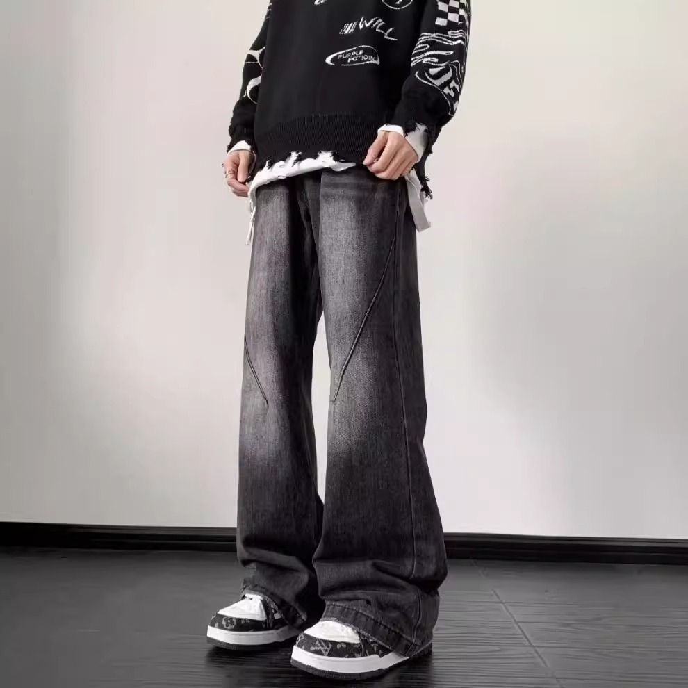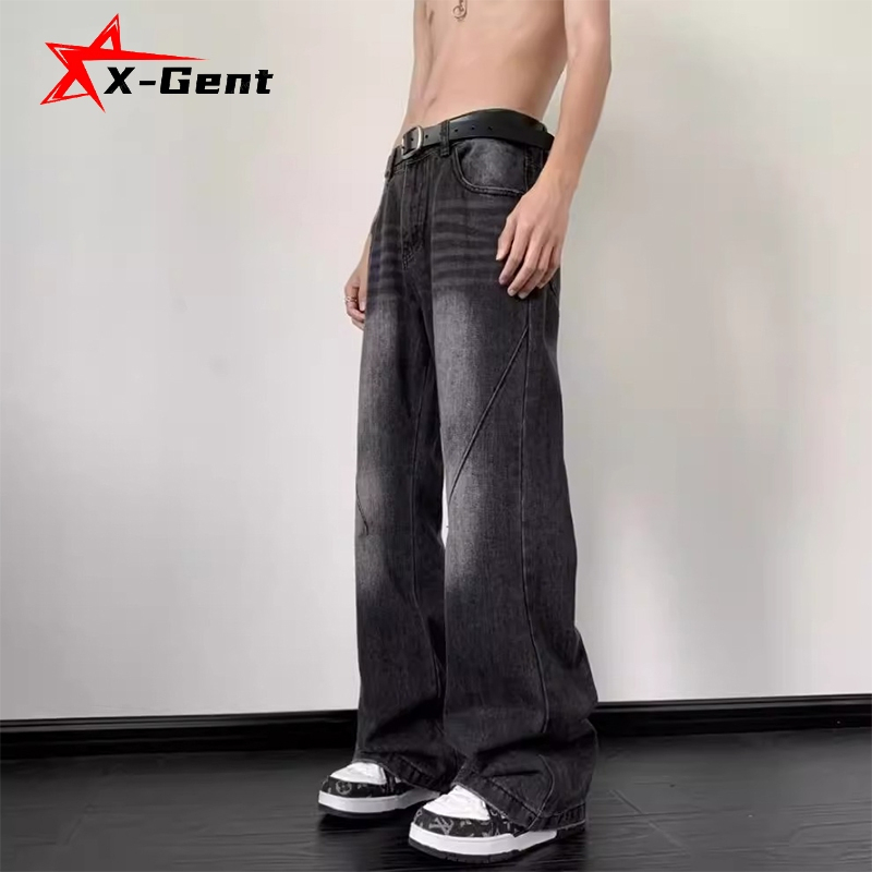 X-Gent celana gombrong abu hitam jeans pria baggy kulot denim pants cowok