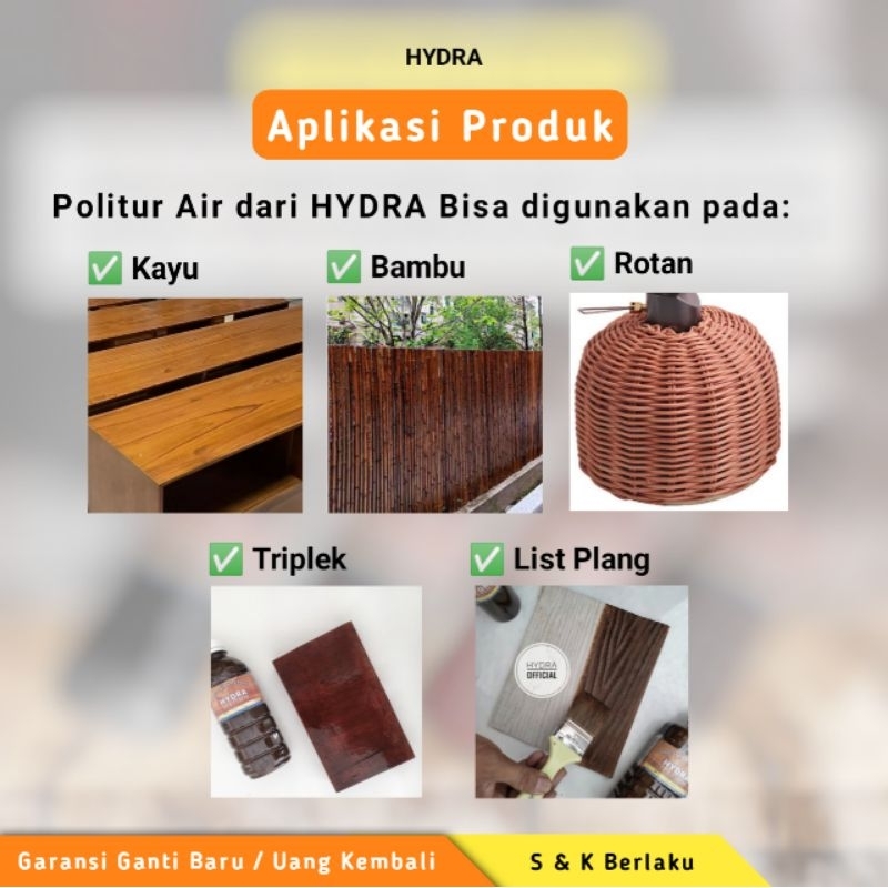 Walnut, Mahoni, Salak, Jati, Cherry, Yellow BB, Clear Gloss WB