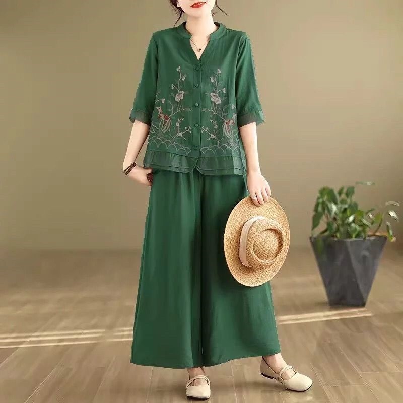 - Irene One Set Setelan Wanita Dewasa Kekinian Matt Linen ARami Apk Bordir OOTD Casual Daily