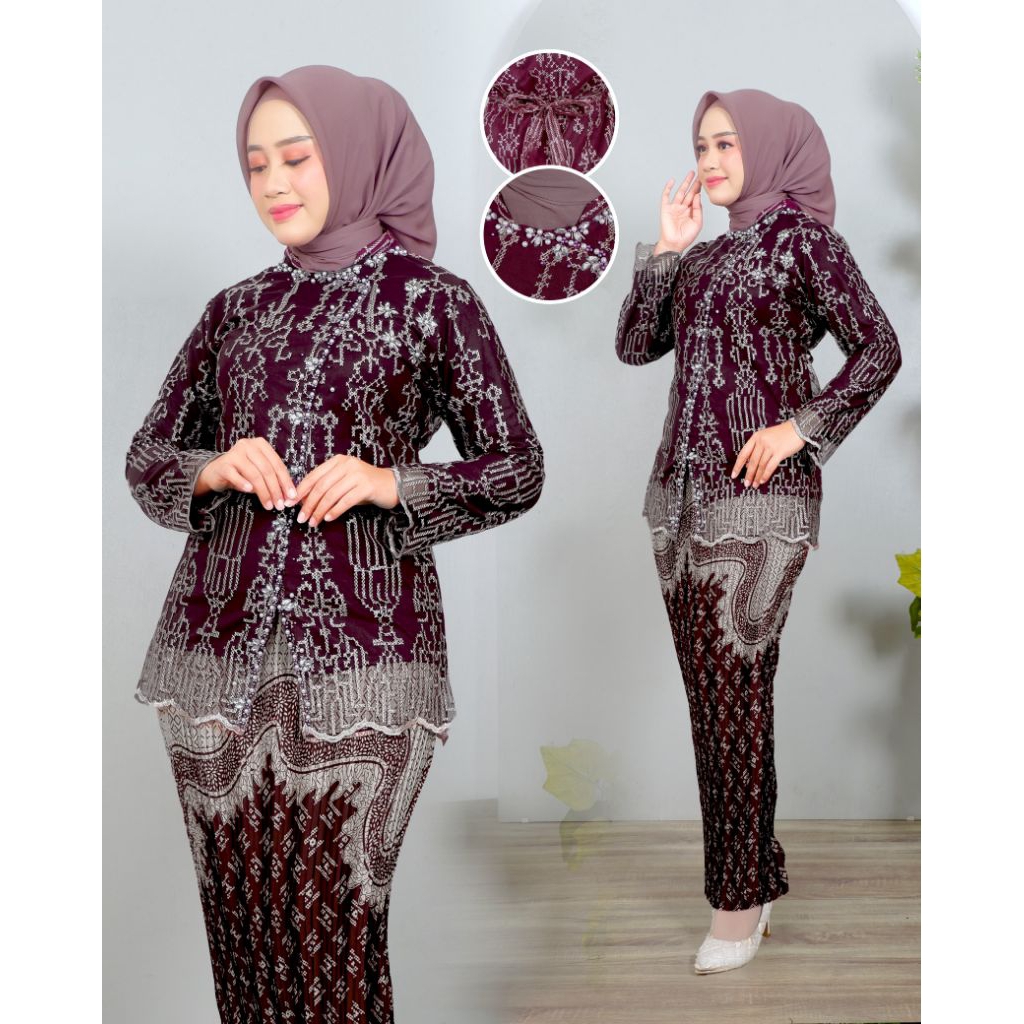 Setelan Kebaya Wanita Wisuda Modern Sarita Tile Mix Mutiara Terlaris Terbaru / Kebaya Kekinian Viral 2025 / Kebaya Kondangan Pesta