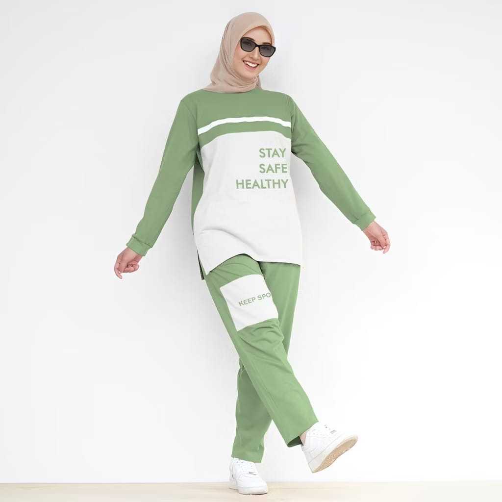 One Set Vega Wanita Muslim/Setelan Olahraga Jumbo LD 110-120cm