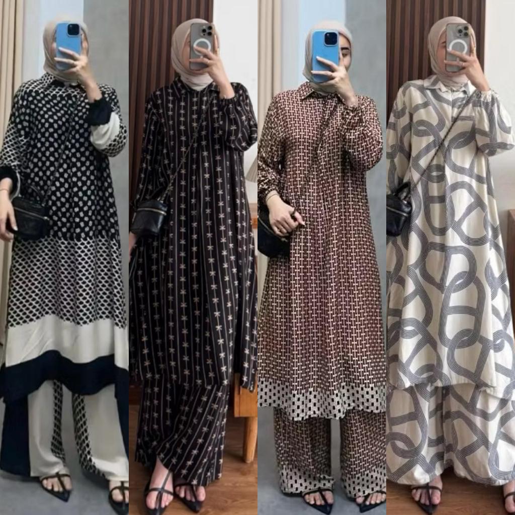 DUMAI LONG SET VIRAL SETELAN LONG TUNIK RAYON MOTIF PREMIUM TERLARIS SET WANITA MUSLIMAH