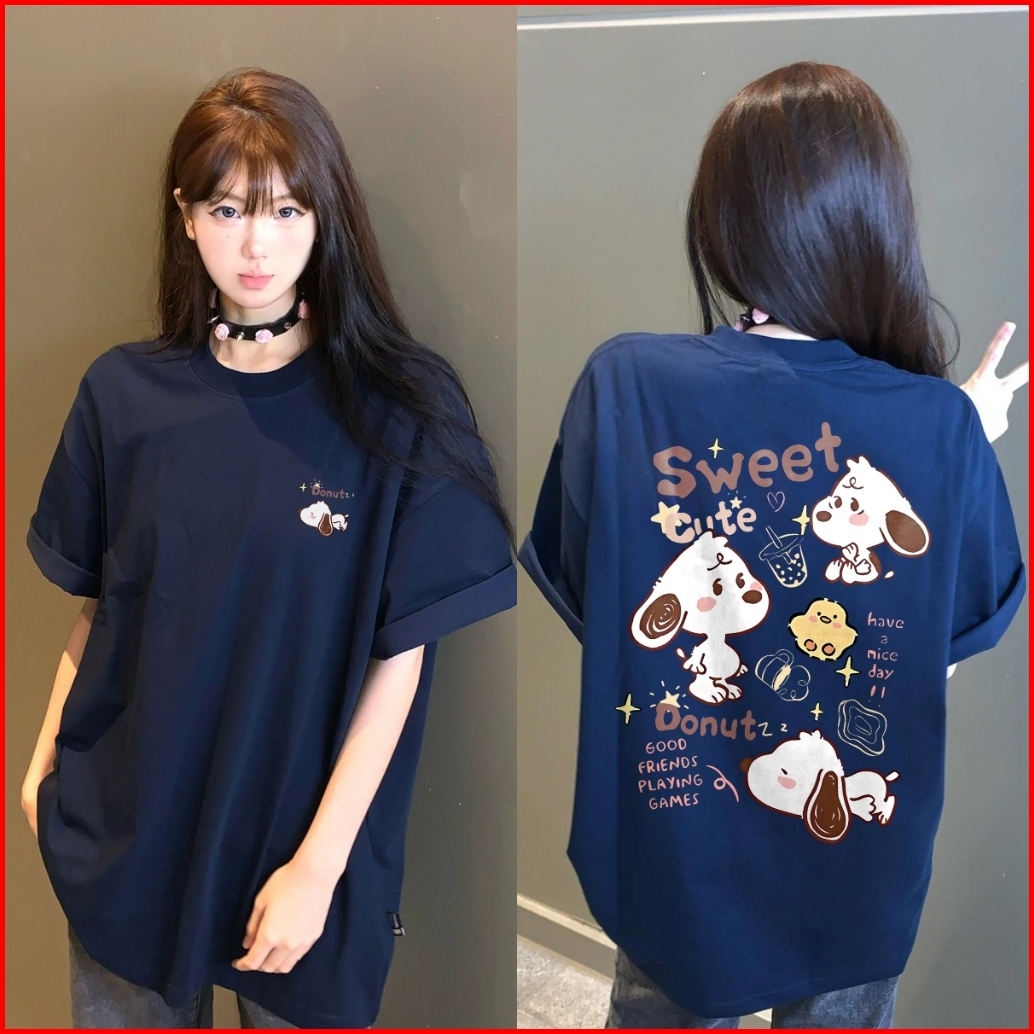 Forteid Biru Laut T-shirt Lengan Pendek Baju Kaos Oversize Wanita Baju Kaus Wanita Korea Baju Atasan Wanita Terbaru Pola