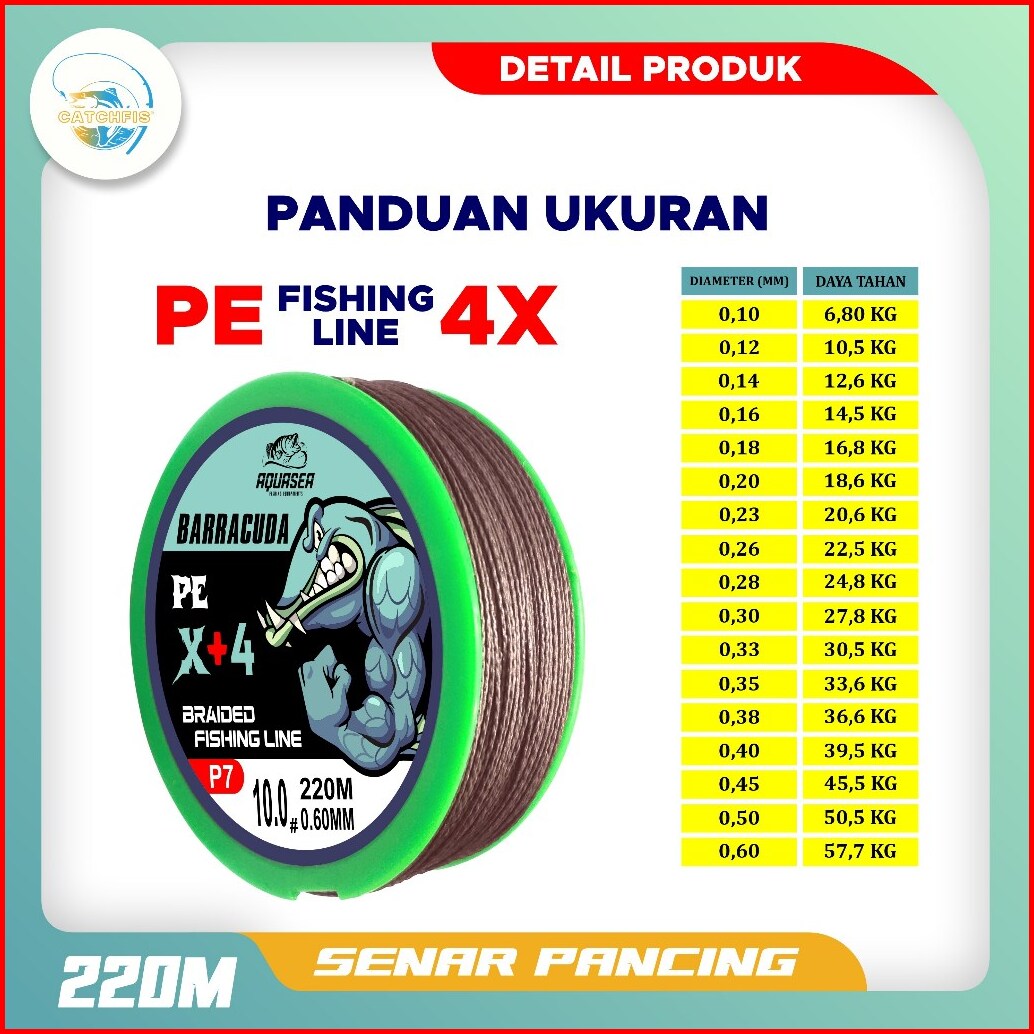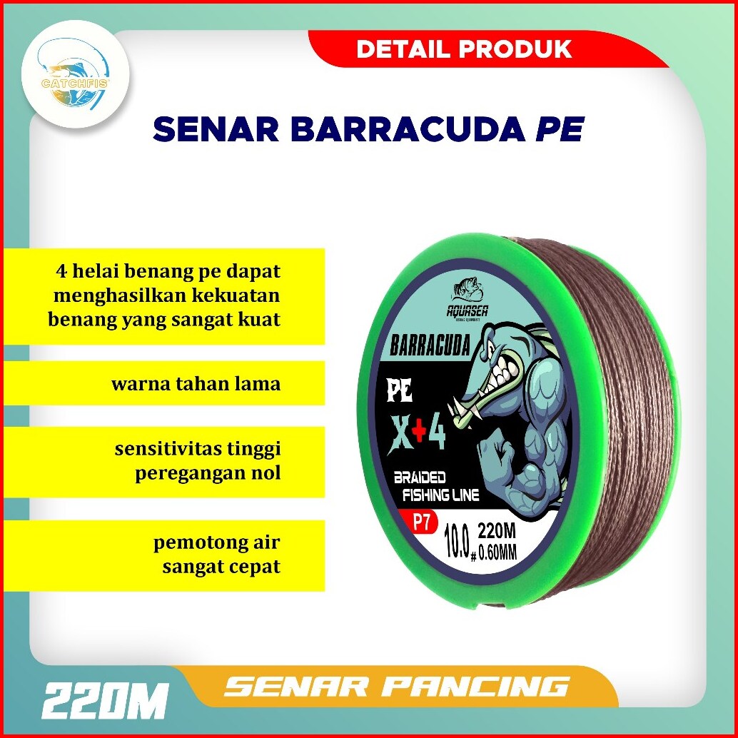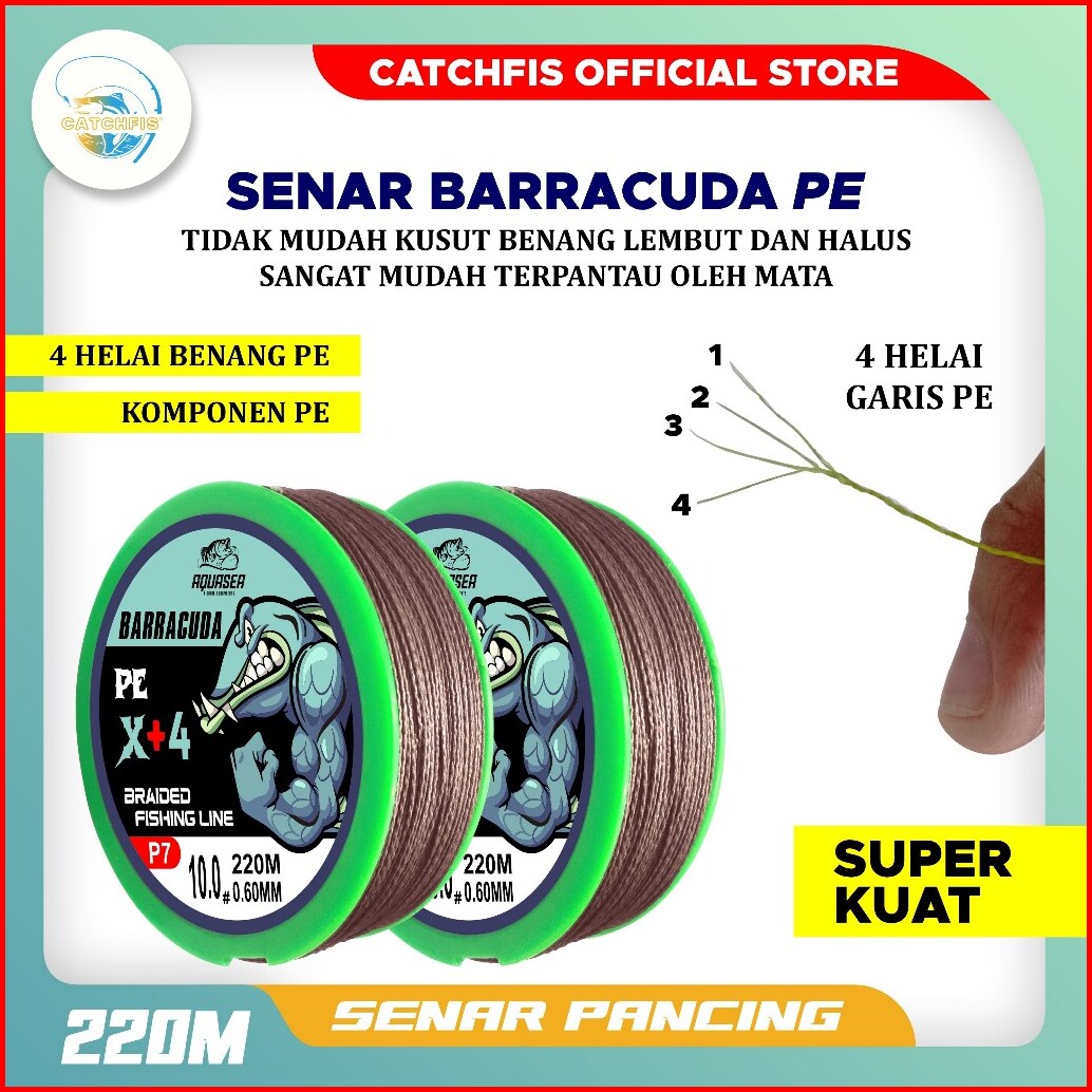 Catchfis Senar Pancing Barracuda Coklat Pe X 4 Panjang 220m Braided Fishing Line