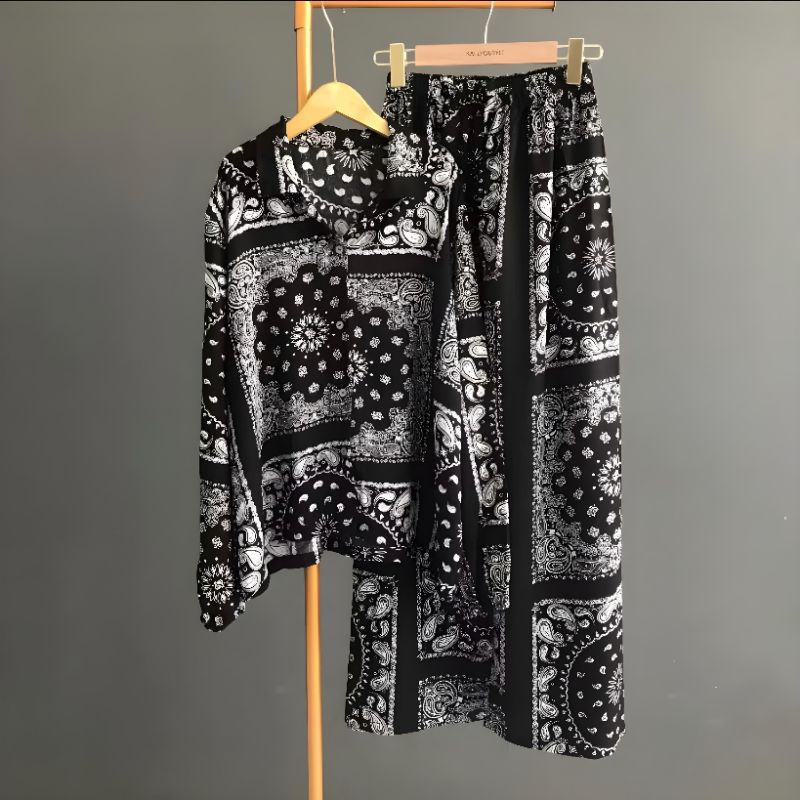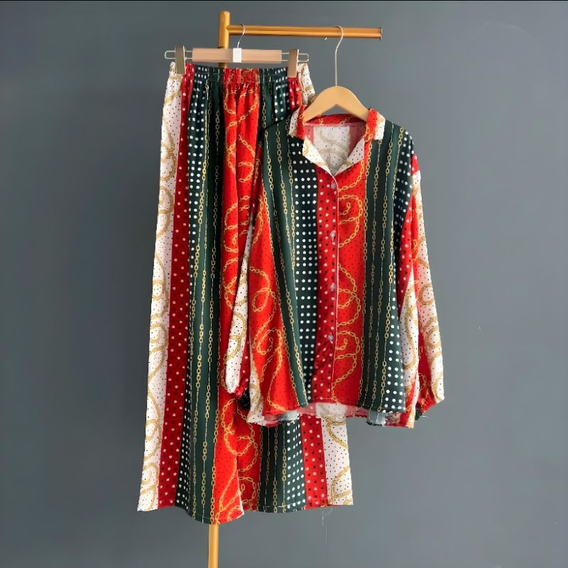 ONE SET SETELAN KEMEJA CELANA HOMMY RAYON MOTIF SATU SET PIYAMA