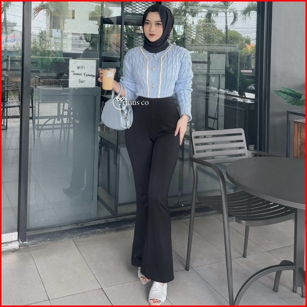 Flare Pants Highwaist Celana Cutbray Basic Premium Bahan Stretch Melar Elastis Kulot Scuba
