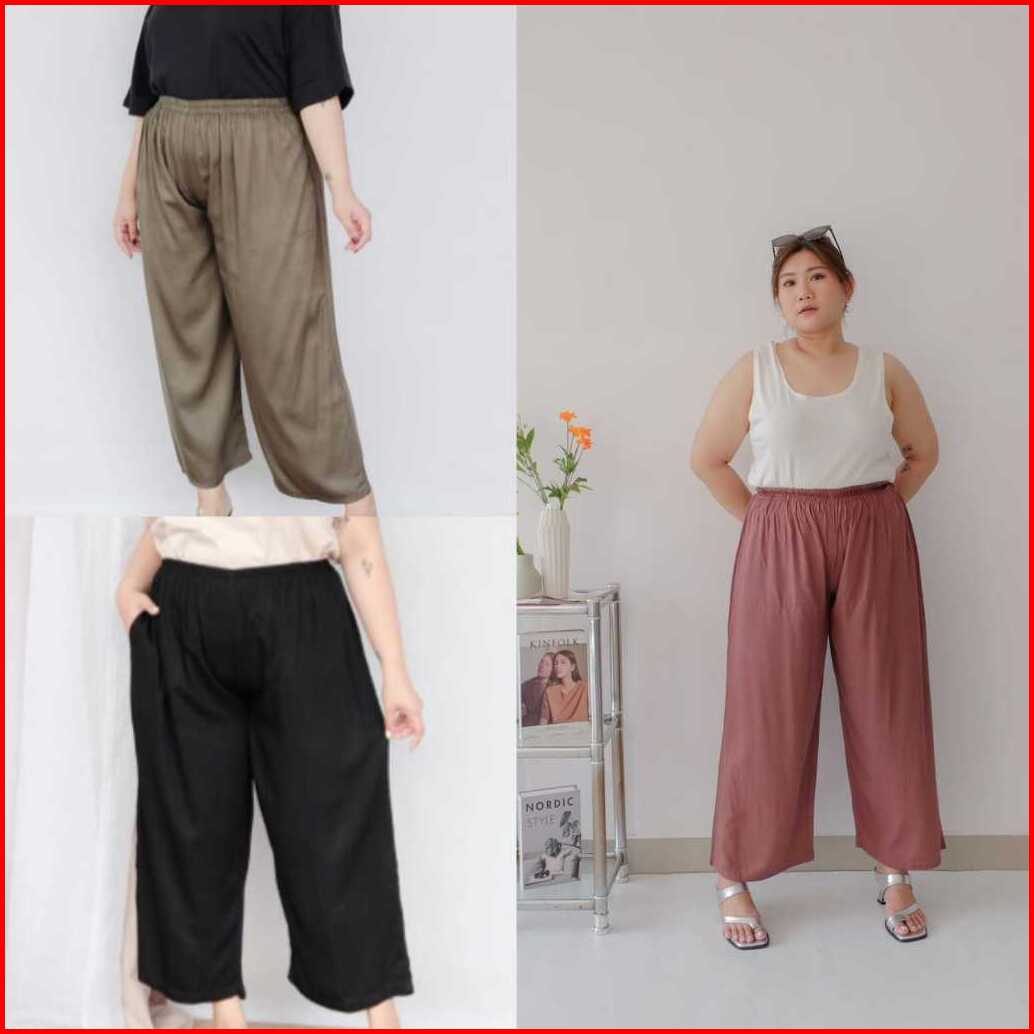 Bigwell Celana Rayon Polos - Celana Wanita Bigsize