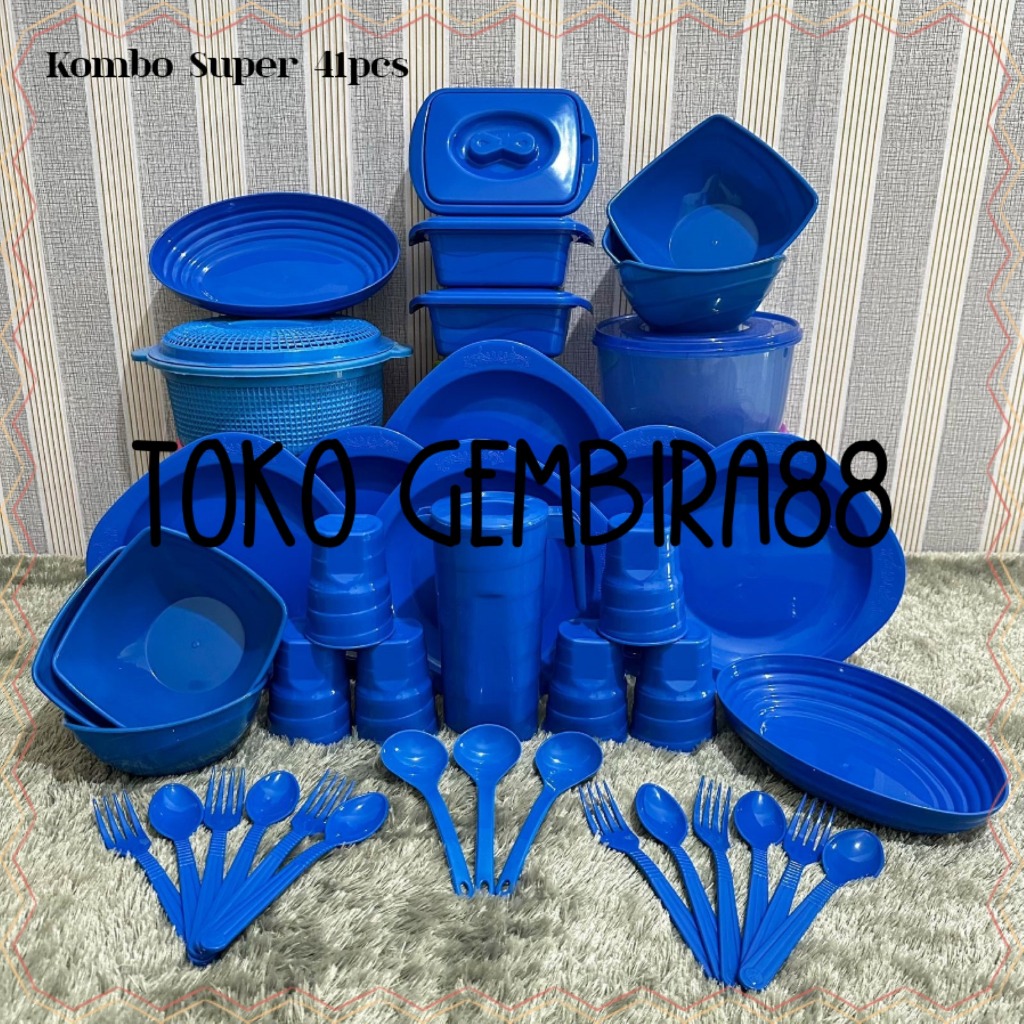 Set Kombo Super 41pcs / Piring segi / Mangkok Segi / Gelas Ulir 450ml / Piring Sayur / Wakul / Teko Coolpot 1,3L / Box sayur 2200ml / Sendok / Garpu