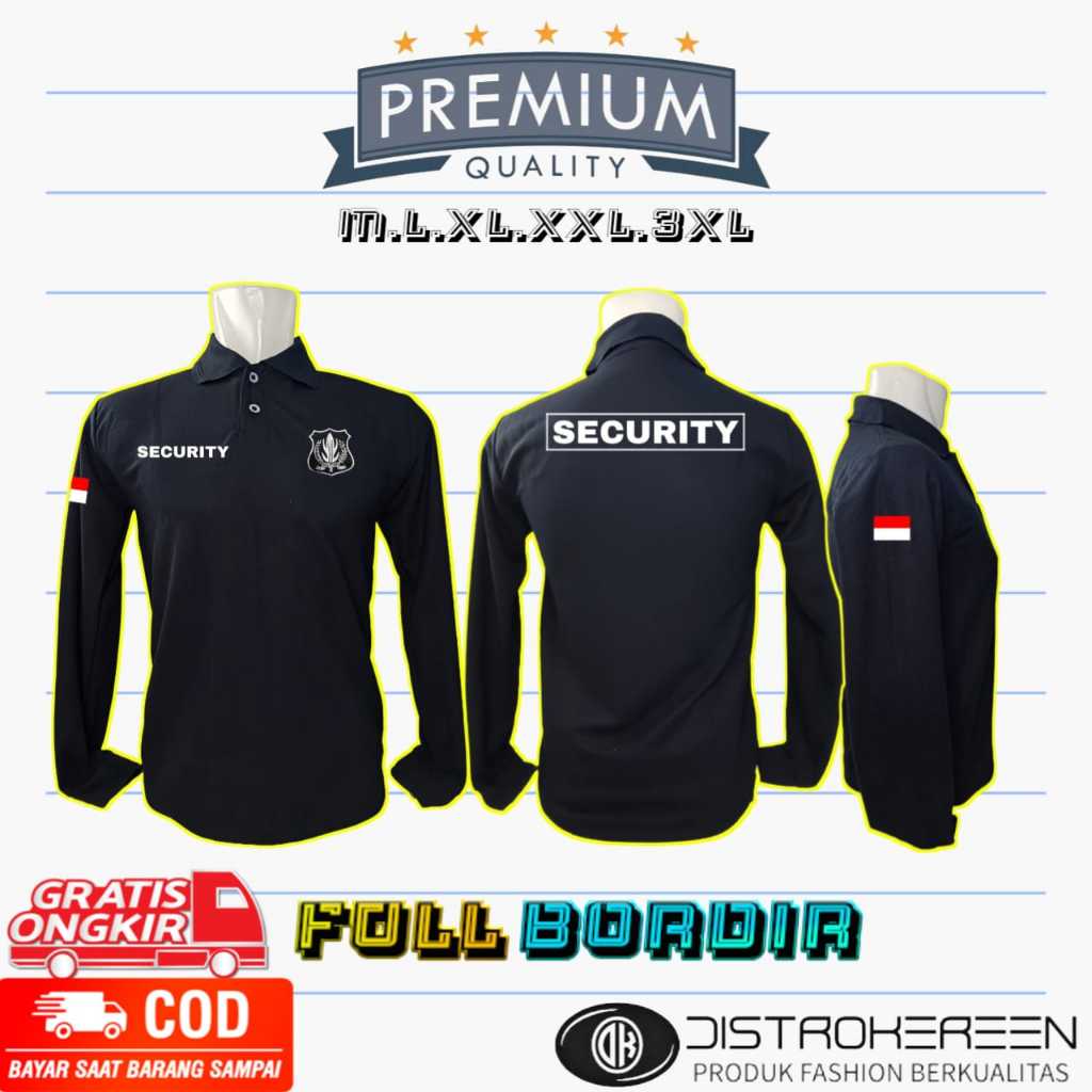 BAJU KAOS SECURITY LOGO PUTIH LENGAN PANJANG FULL BODIR | BAJU SATPAM | BAJU SECURITY BANYAK WARNA