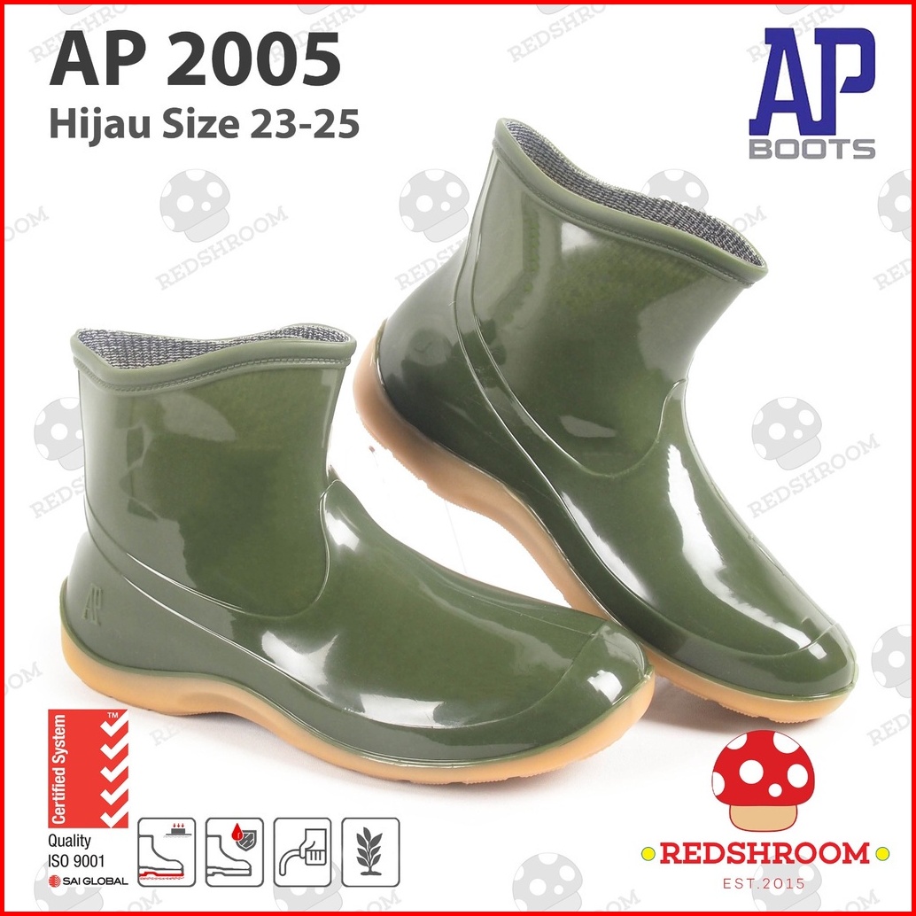 Sepatu Boot Pendek Ap 2005 Hijau Glossy Ap Boots Fashion Wanita Karet Anti Slip Dan Air Lokal Perkebunan