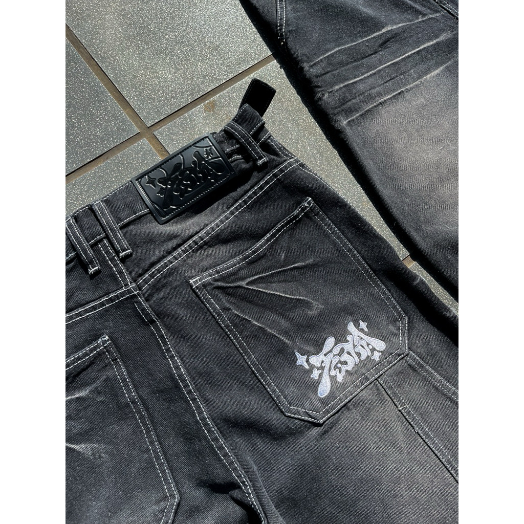 πππππΌπππππππ - Carpenter Baggy Pants Washed Logo - Shinee - Hitam - Baggy jeans pria wanita