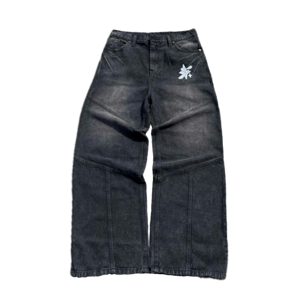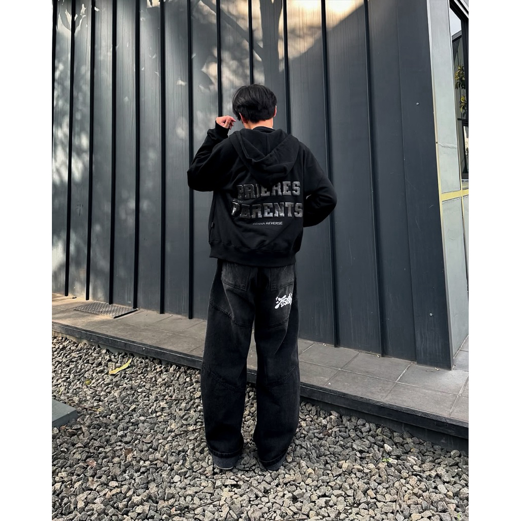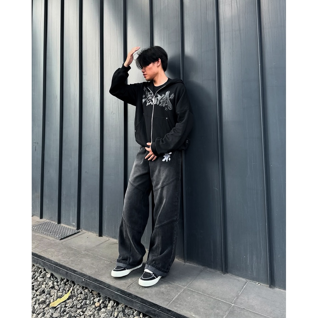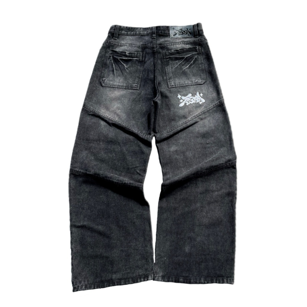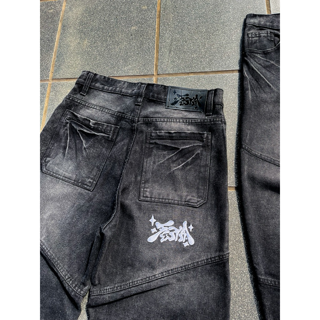 πππππΌπππππππ - Baggy Pants Washed Logo - Shinee - Hitam - Baggy jeans Pecah Pola pria wanita