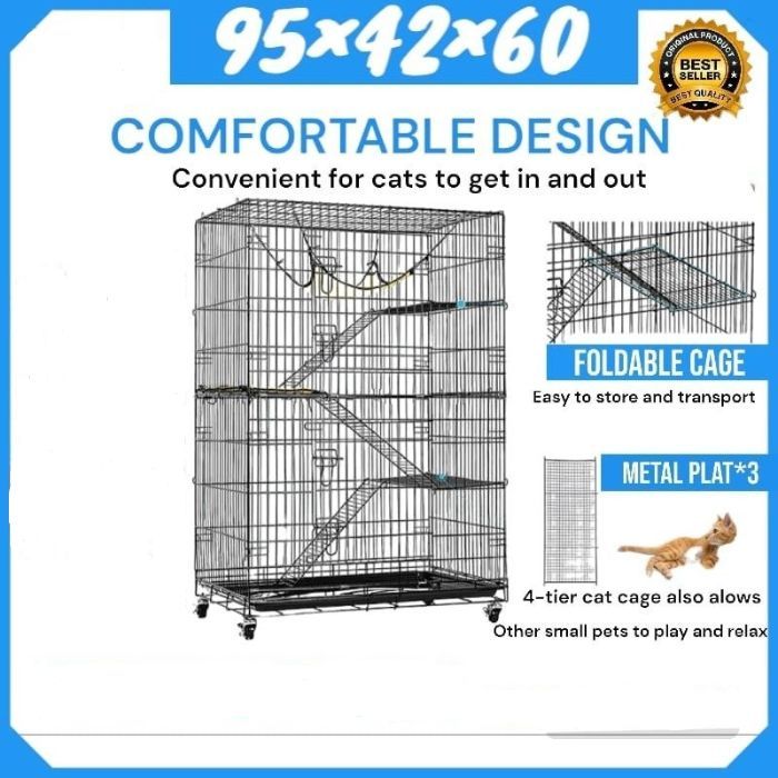KANDANG KUCING MURAH TINGKAT 3 + roda size 956042 CM terlaris, termurah, dan berkualitas.
