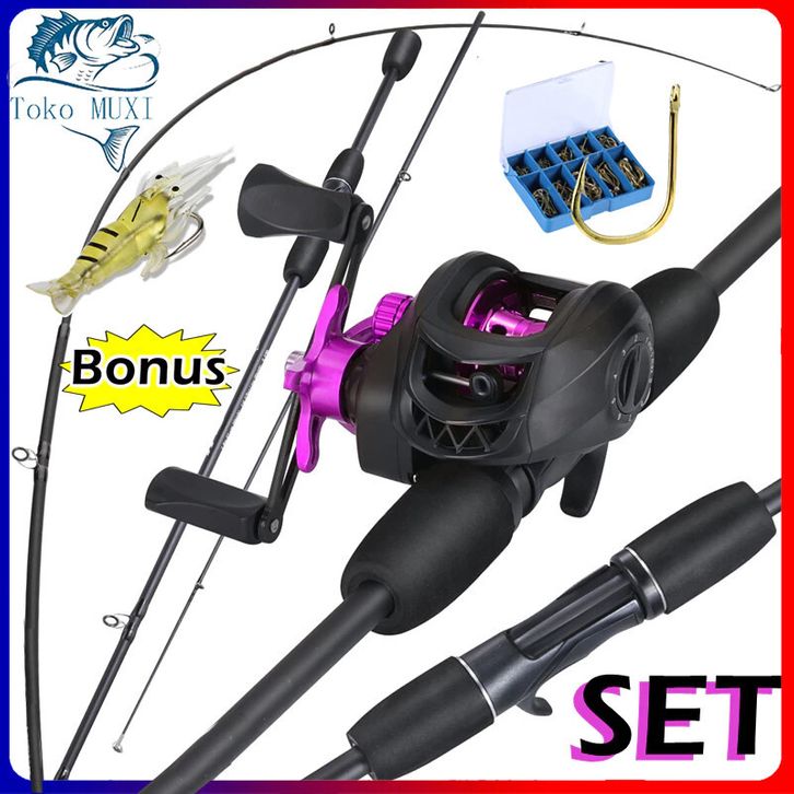 MUXI Joran Pancing Full Set 1.8M 2.1M 5-10LB 7.2:1 Joran BC Set UL Carbon Pancingan Set Lengkap