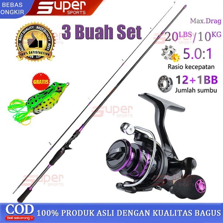 3 Buah Setreel pancing Murah Joran Pancing Set Dengan Bahan Serat Karbon1.6M/1.8M/2.1M/2.4M Joran