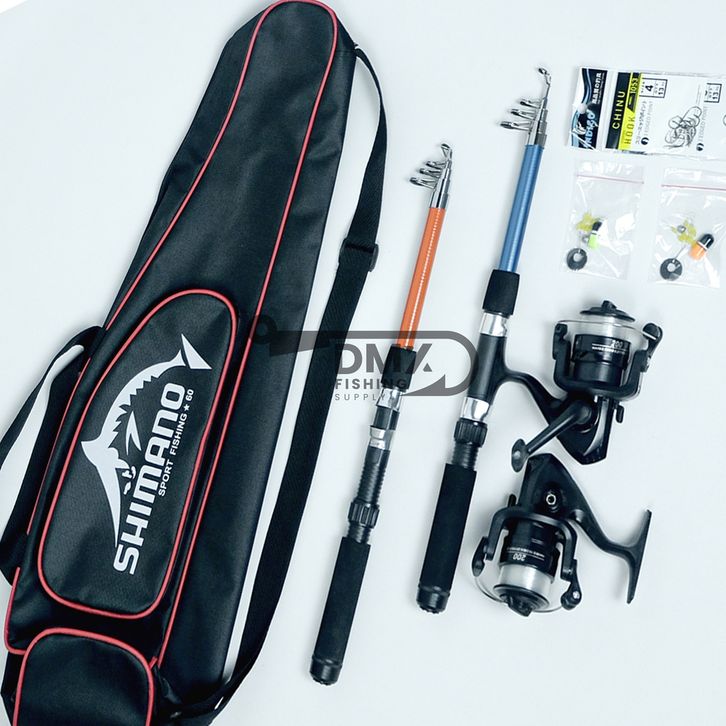 2 Set Joran Pancing Antena Fiber 1,5 Meter Dan Reel 5Bonus Tas Kekuatan 5-7 KG