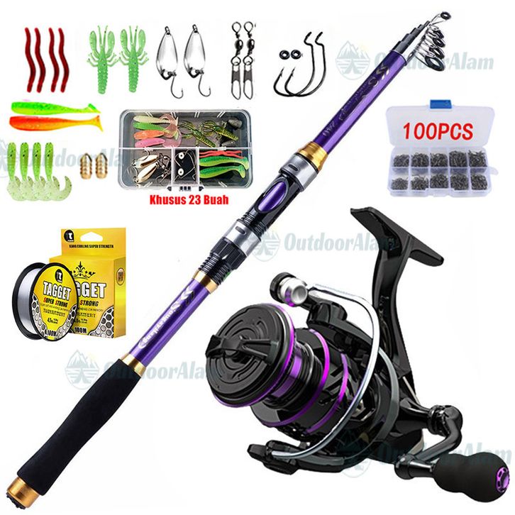 Joran Pancing Set Pancing Set Power Hand 1-7 Glass Fiber Metal Spool Reel Pancing Spinning Fishing