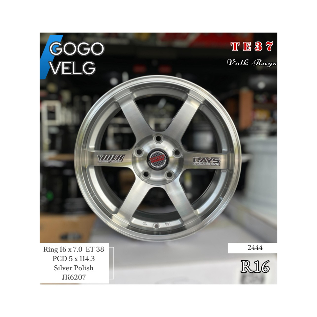 Velg Mobil R16 TE37 PCD 5X114,3 Lebar 7 ET 38 Silver Polish Ring 16 Reborn Innova Rush CRV Ertiga