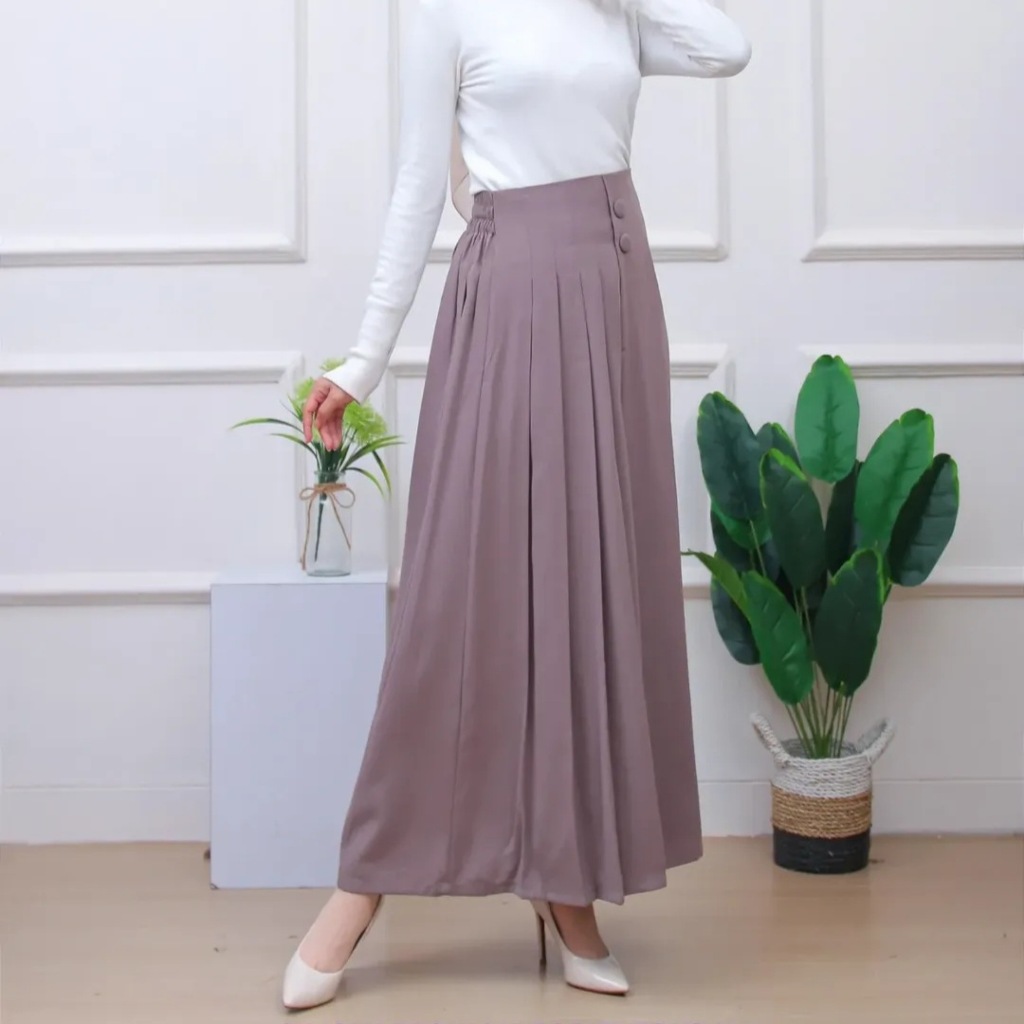 Celana Kulot Rok Husna Kekinian, Nyaman & Sopan Mayung Kancing 2 / Cellie Pleats Cullote Muslimah