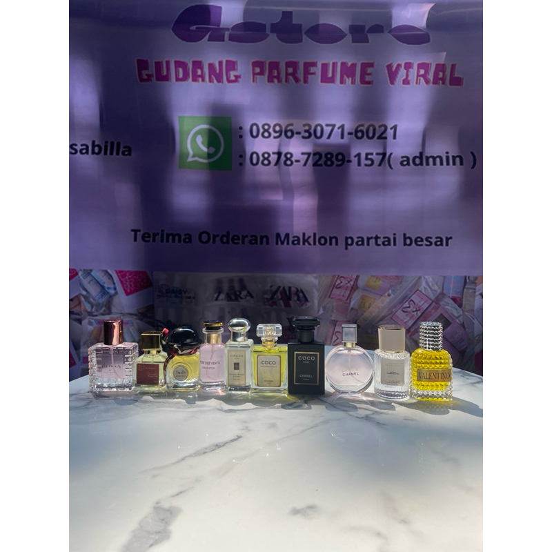Chance channel, Joy dior, Twilly, Coco channel, Sauvage, Jomalone, LV PINK, Delina, Doso diptiq, RANDOM GABISA MILIH