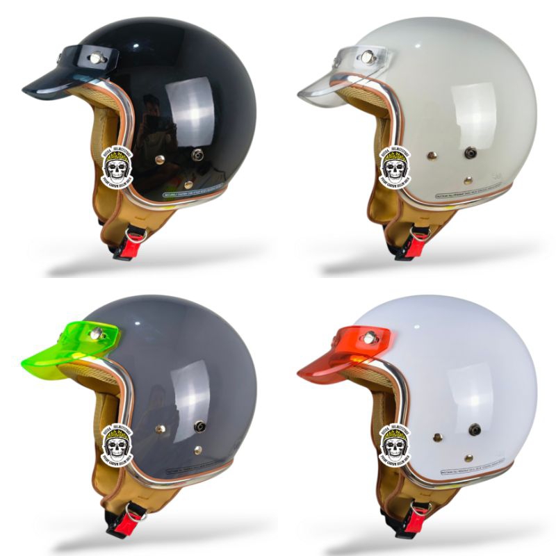 Helm bogo dewasa pet transparan list chrome busa coklat SNI