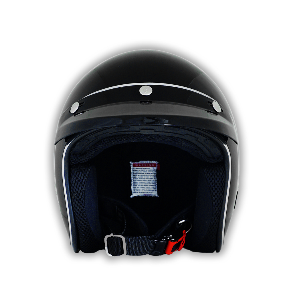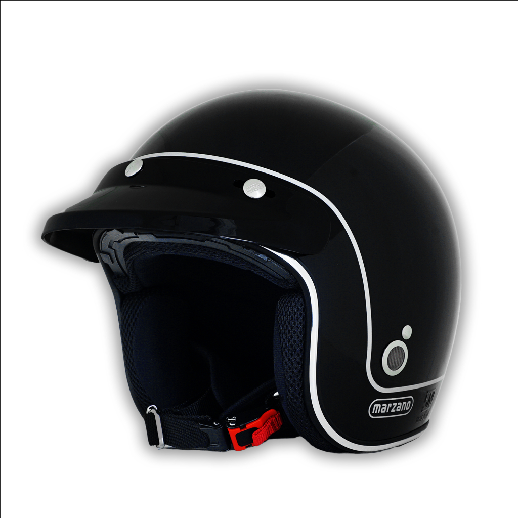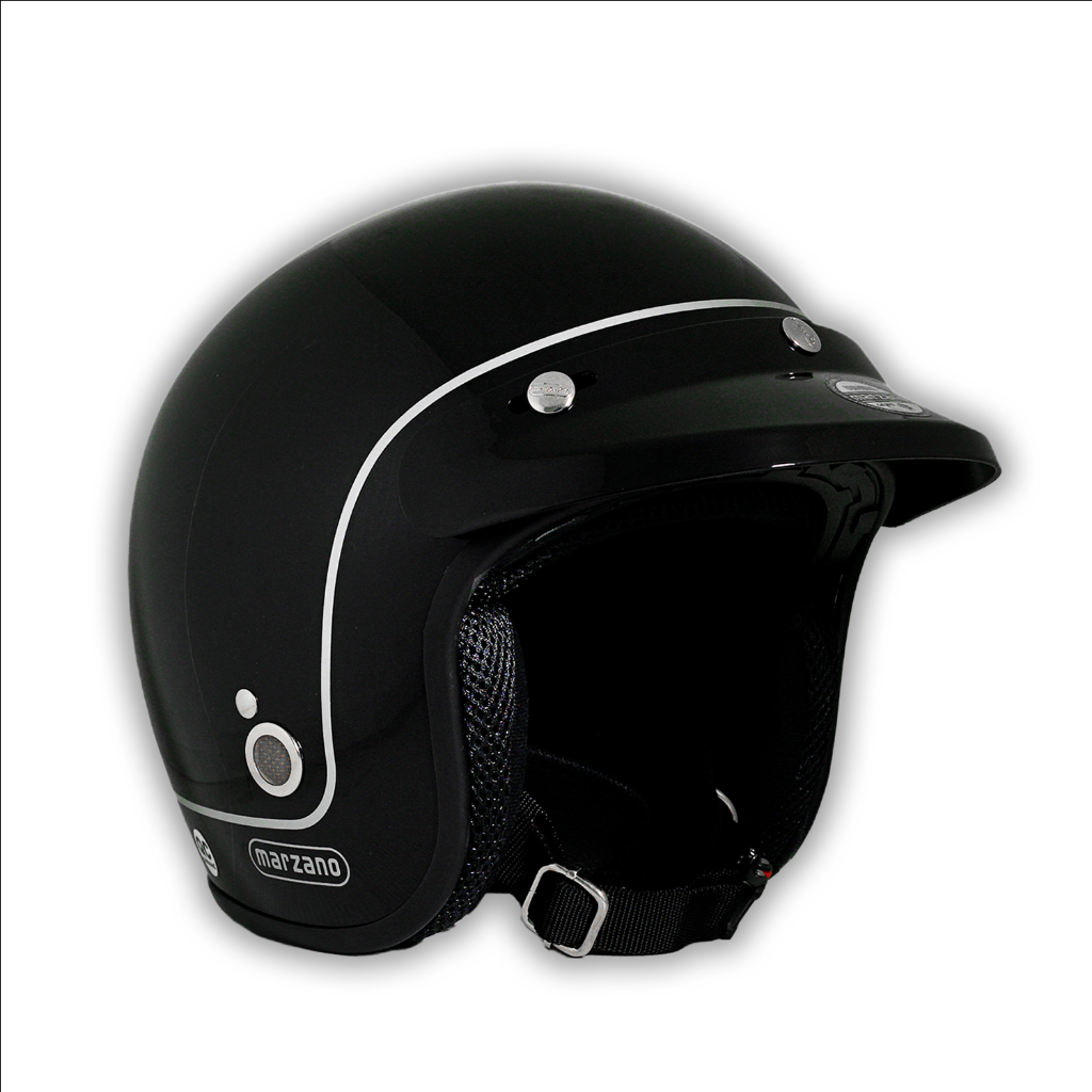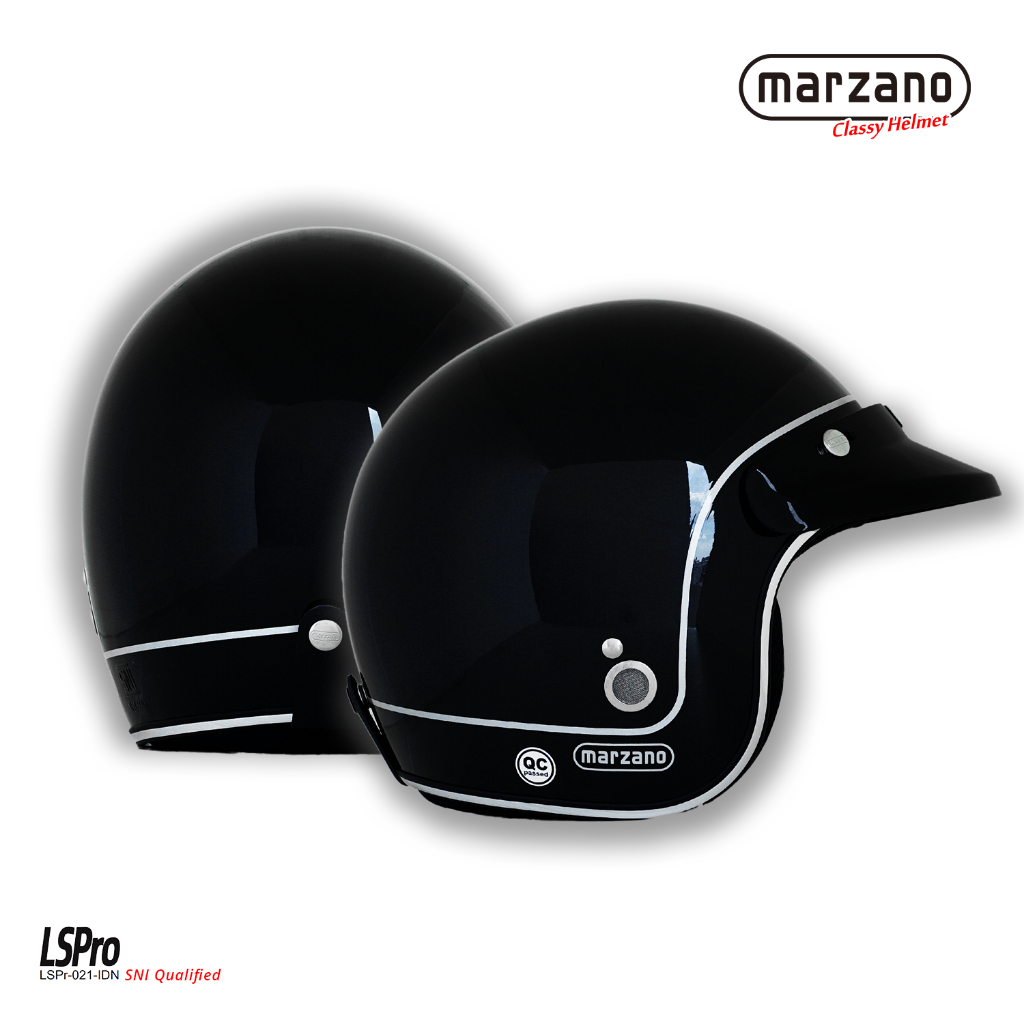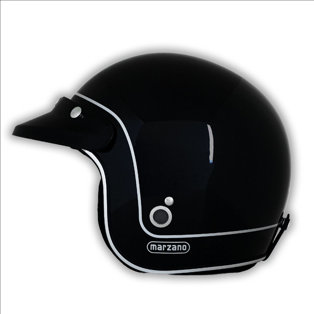 Marzano Helm Retro Bogo Half Face Line Solid Black Silver Size S-XL Berstandar SNI