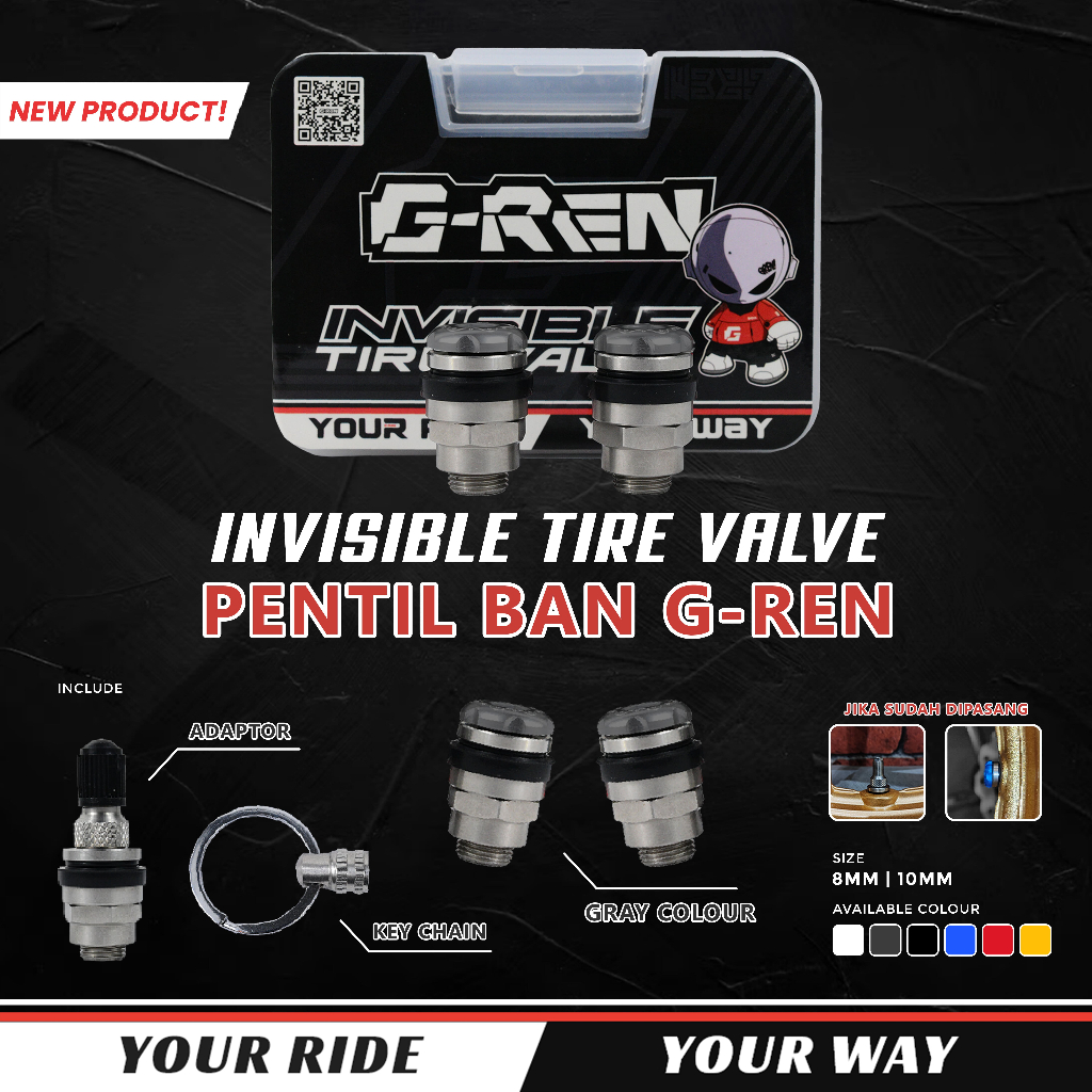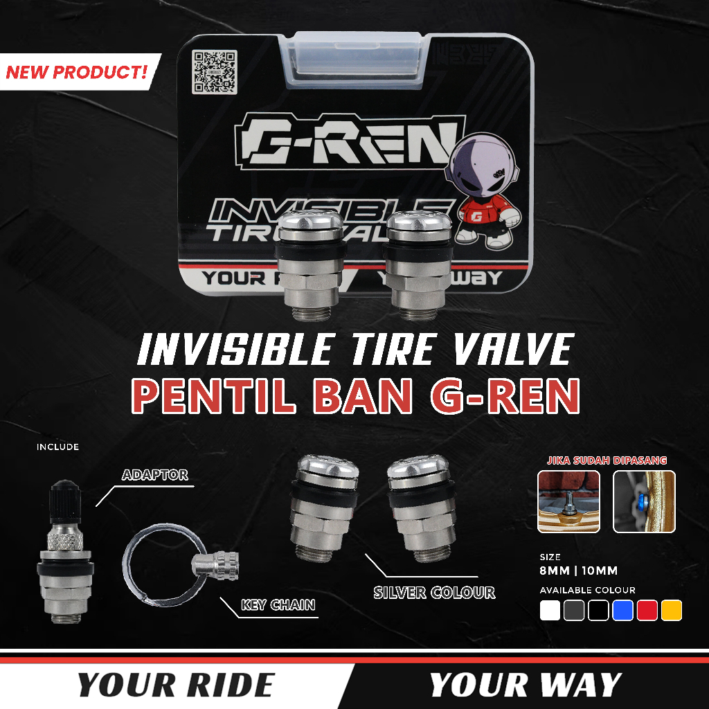 P3NTIL BAN MOTOR G-REN GREN INVISIBLE TIRE VALVE RIM P3NTIL BAN MOTOR TUBLES TUBELESS TUBELLES CNC ALUMUNIUM ANODIZE - 8MM - 10MM