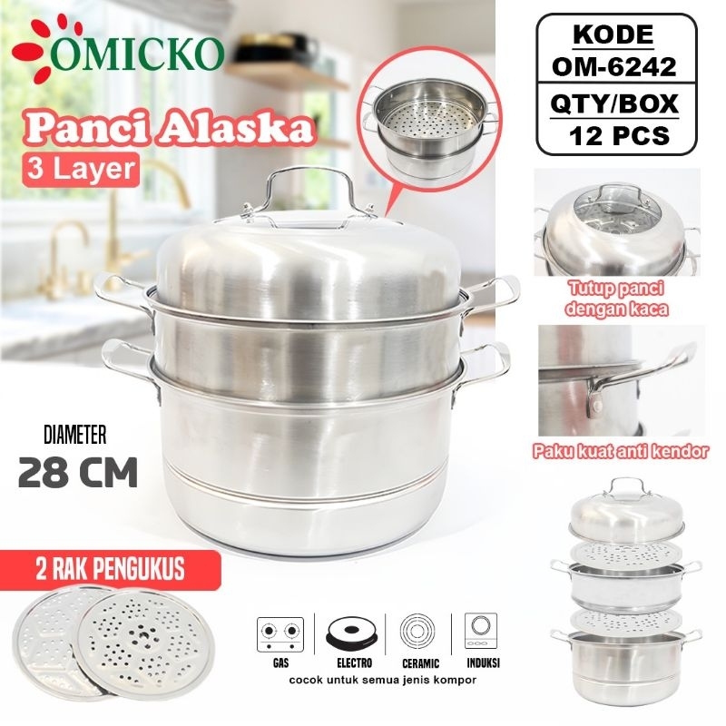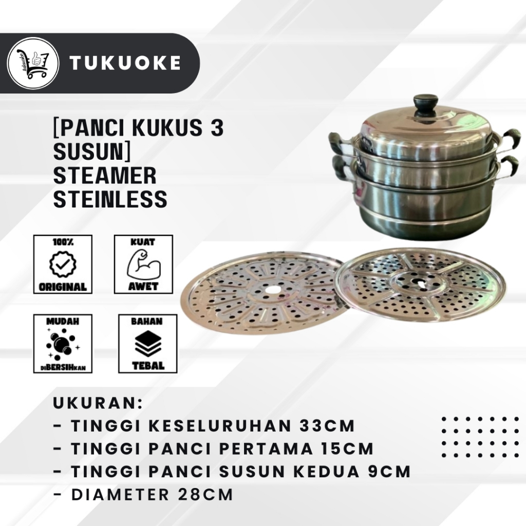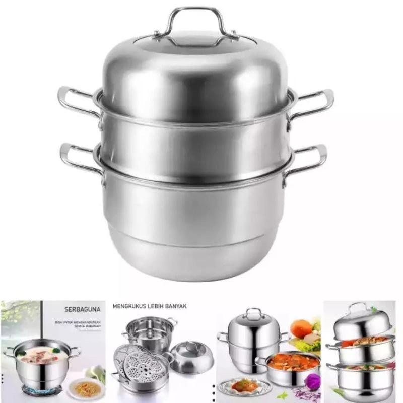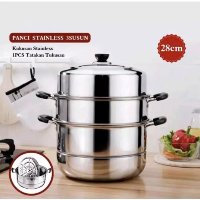[PANCI KUKUS 3 SUSUN] STEAMER STEINLESS TUTUP KACA PANCI SOMAY SIOMAY PAN PENGUKUS 3 TUMPUK STENLISS