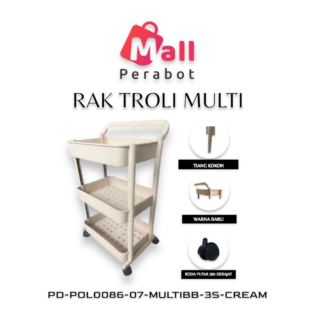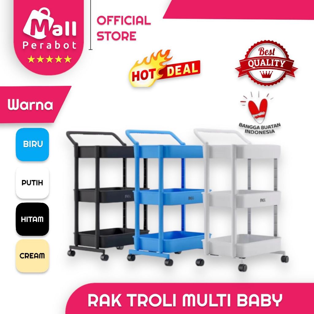 Mall Perabot AFFKH | Rak Multi Baby 3 Susun | Rak Troli Plastik Serbaguna Dapur Salon Kamar Mandi dengan Roda dan Pegangan | Tempat Penyimpanan Makan