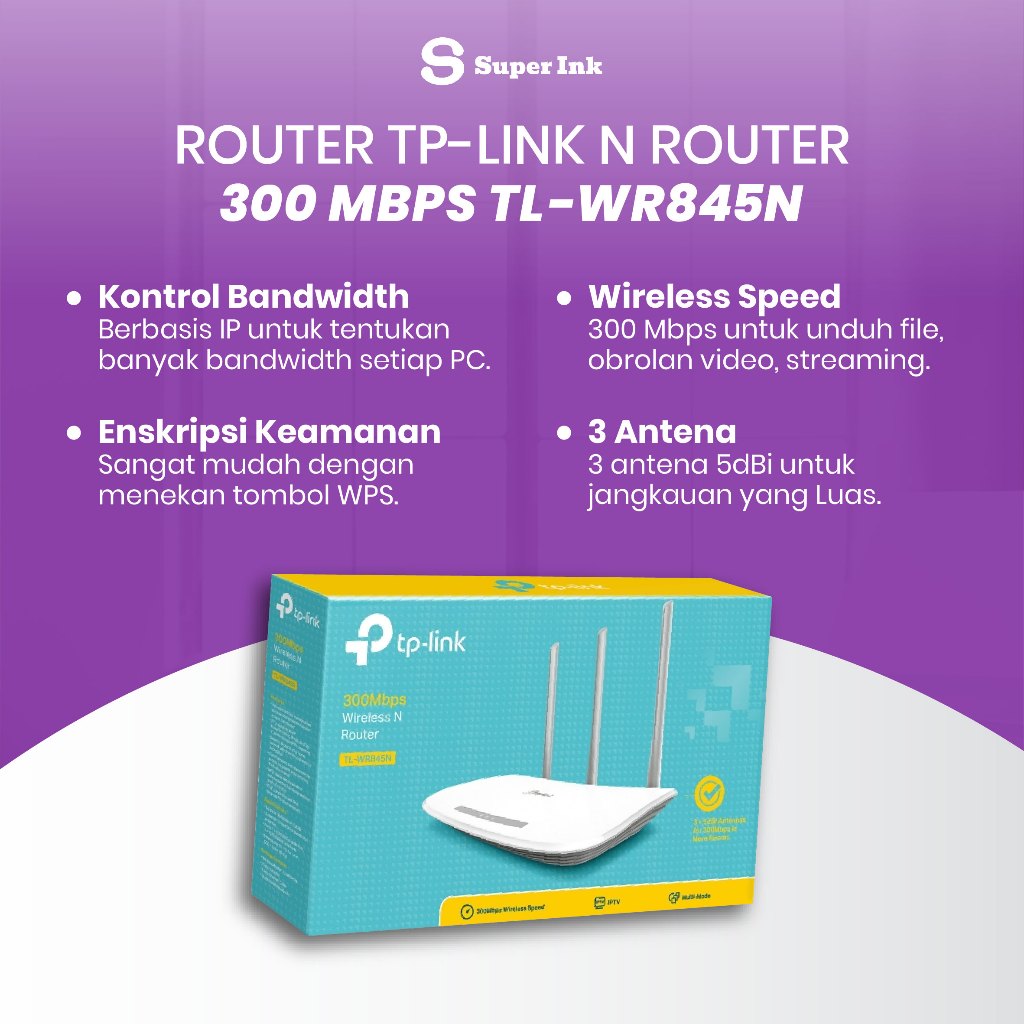 TP-Link TL-WR845N – Modem + Router WiFi 300 Mbps Wireless N Router Cocok untuk Rumah/Kantor