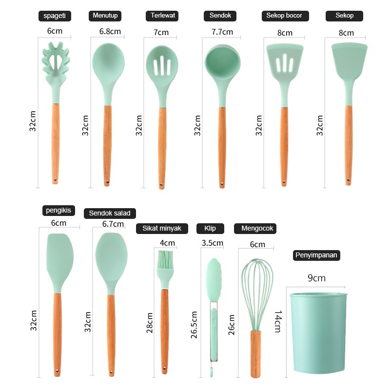 LCX Sutil silikon Spatula Silicone sodet Alat Masak set 12pcs / VS-1809