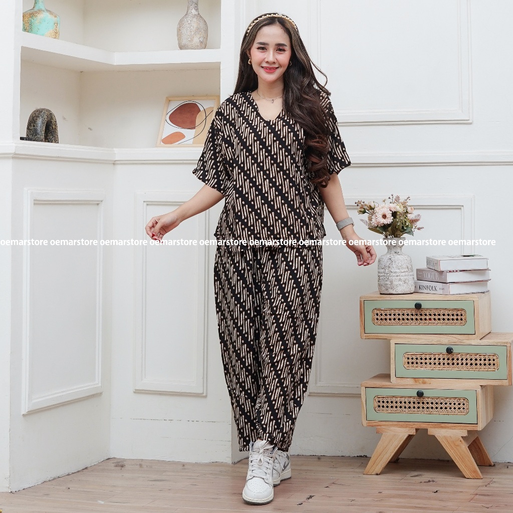 SETELAN CELANA PANJANG KULOT MOTIF SENO || SETELAN BATIK LD 120 CELANA KULOT