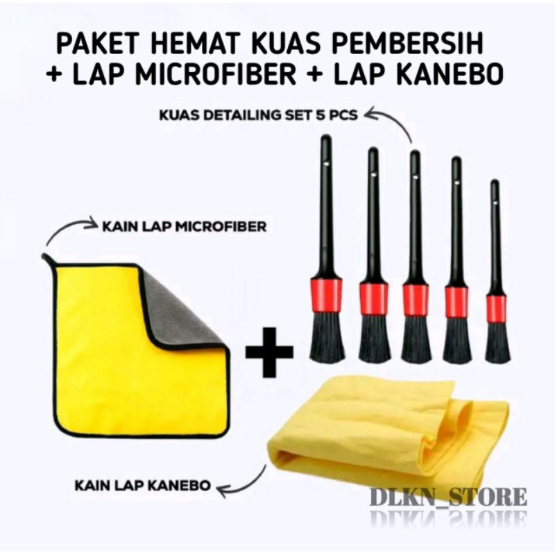Paketan Hemat Kuas Pembersih kendaraan + Kain Lap Microfiber + Lap Kanebo serbaguna