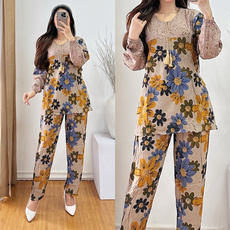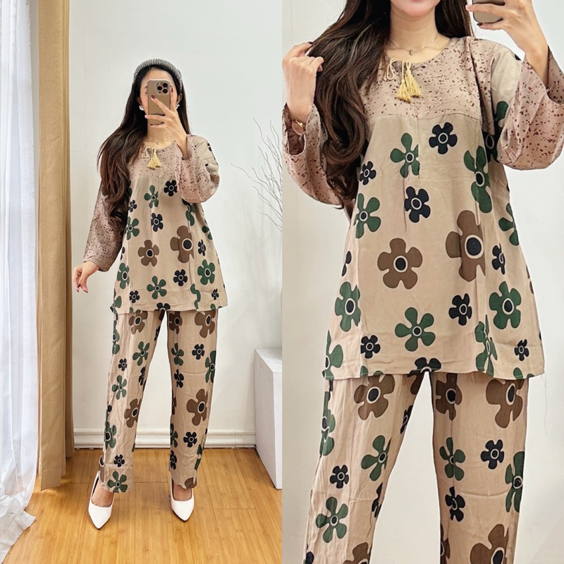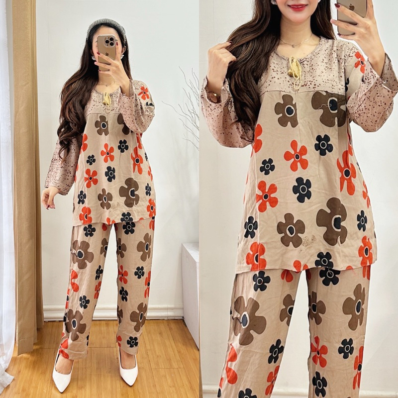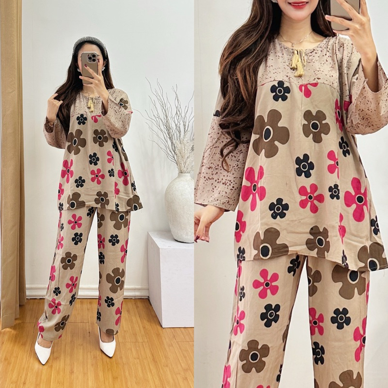 One Set Lengan Panjang Ld 115 Motif Bunga Dahlia || Setelan Dewasa Ld 115 Motif Kekinian