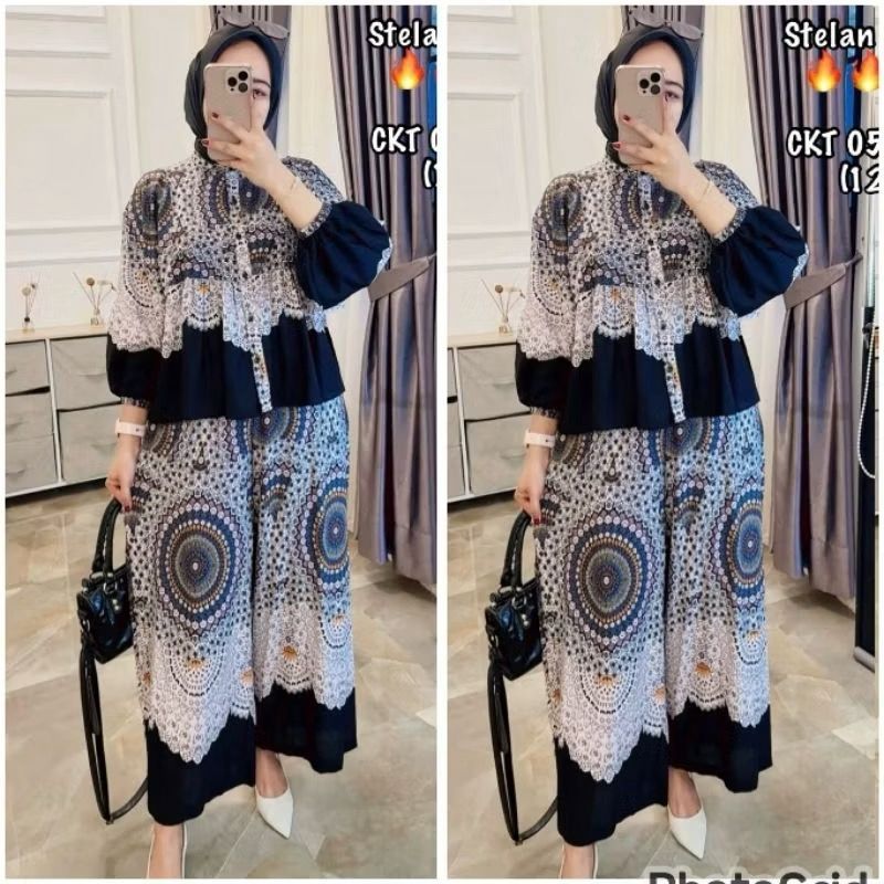 One Set Kemeja Lengan 7/8 dan Kulot Panjang Rayon Motif Adem dan Nyaman One Set Daily