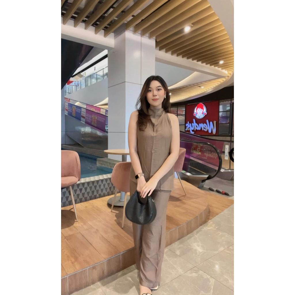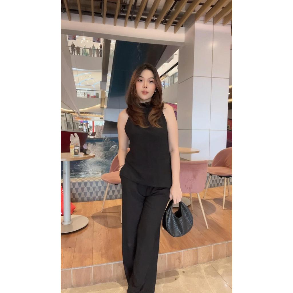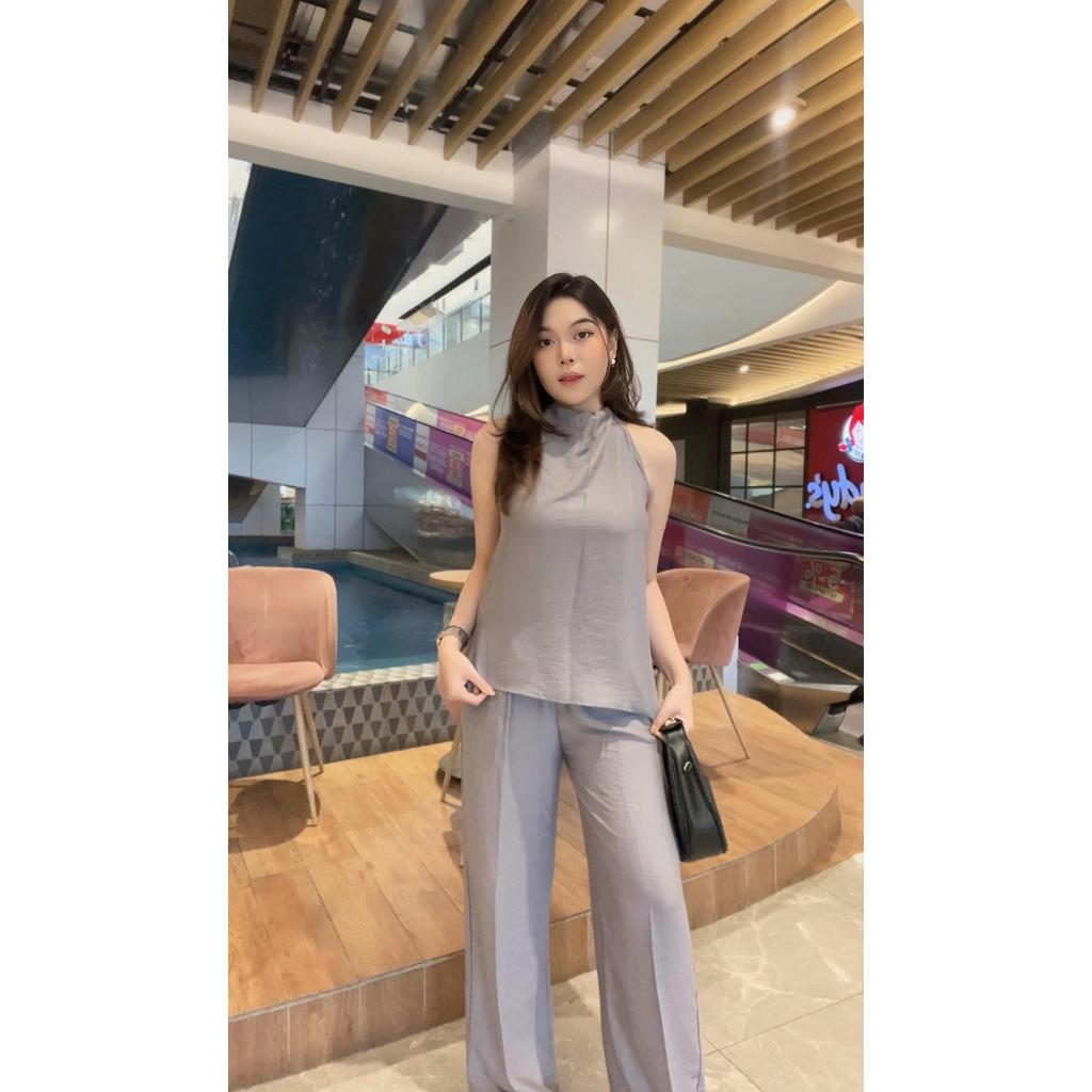 NEW GNY One Set - Setelan Korean Atasan dan Bawahan Wanita - Top Baju Wanita dengan Tali & Lengan Pendek - Bawahan Kulot Premium