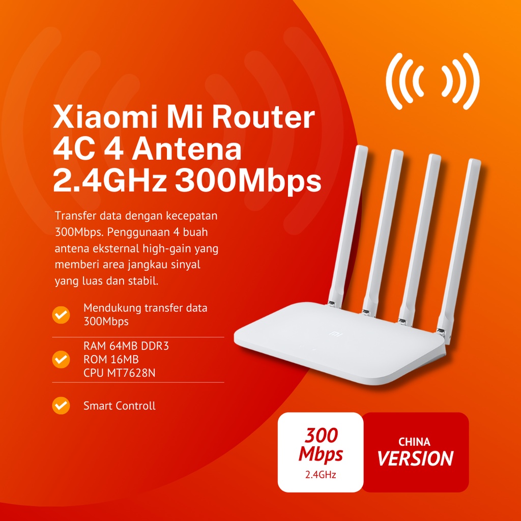 Xiaomi Mi Router 4C 300Mbps 4 Antena 802.11n 2.4GHz MT7628N