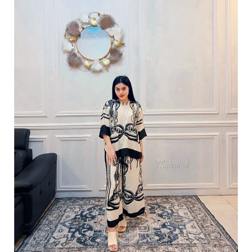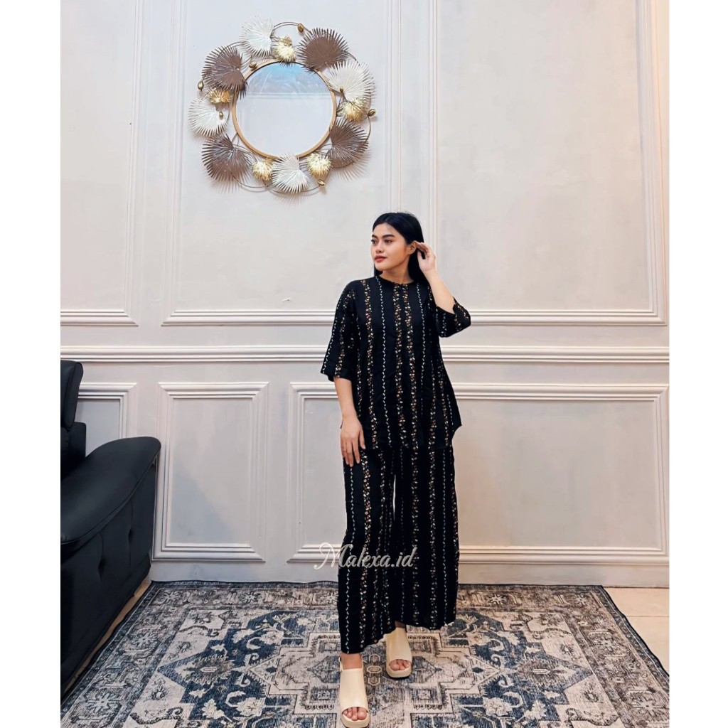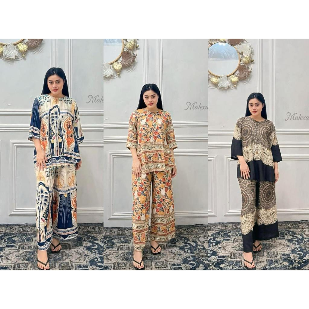 Malexa.id - Lala One Set Vest Kemeja dan Kulot Lengan 7/8 Rayon Motif Adem dan Nyaman One Set Daily