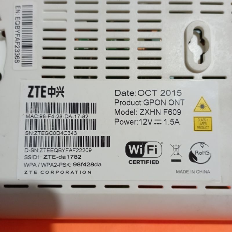 ZTE ZXHN F609 V1 GPON ONT ROUTER WIRELESS