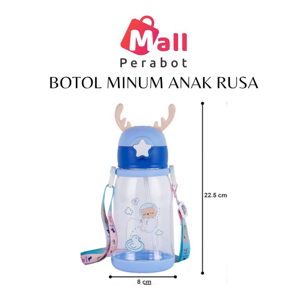 Mall Perabot AFFKH | Botol Air Minum Anak Plastik Sedotan 610ml Model Tanduk Rusa Lucu | Botol Minum Sekolah BPA FREE Food Grade